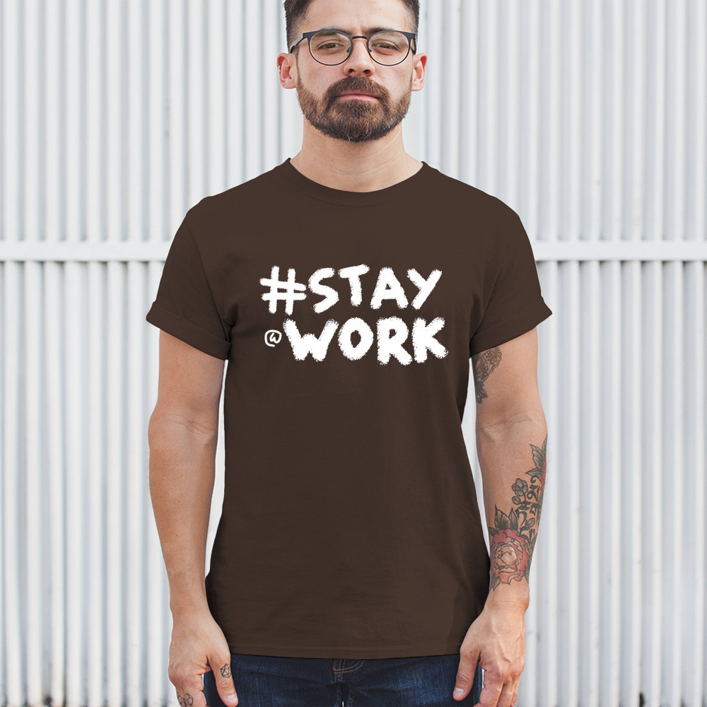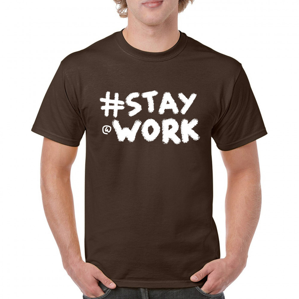 STAY AT WORK FUNNY ELON MUSK TWEET PARODY t-shirt liberal sarcasm men's tee brown