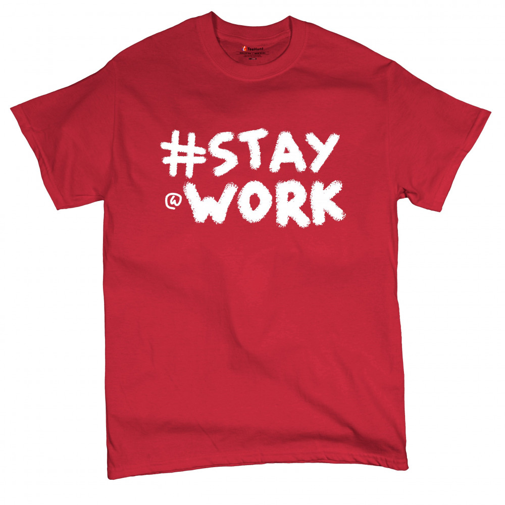 STAY AT WORK FUNNY ELON MUSK TWEET PARODY t-shirt liberal sarcasm men's tee red