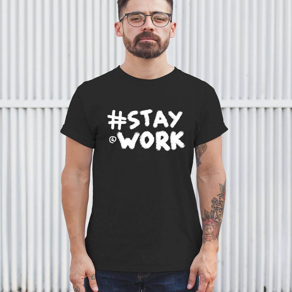 STAY AT WORK FUNNY ELON MUSK TWEET PARODY t-shirt liberal sarcasm men's tee black