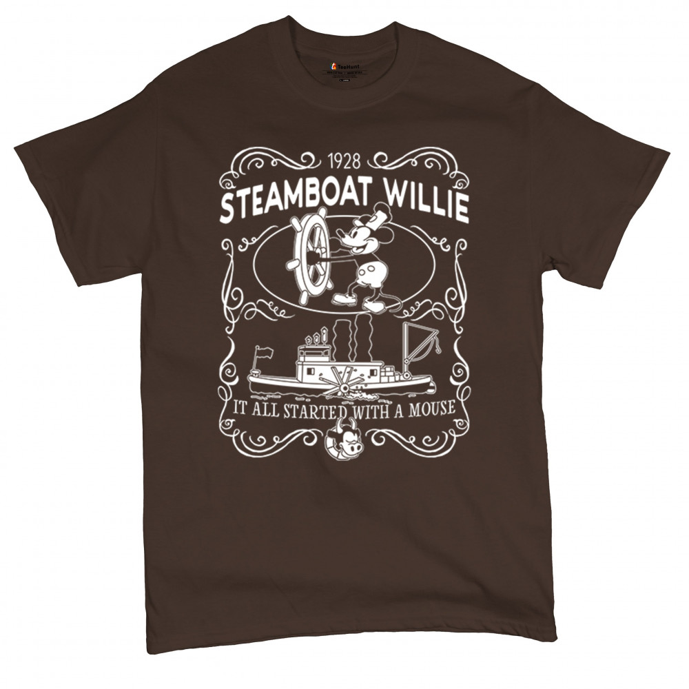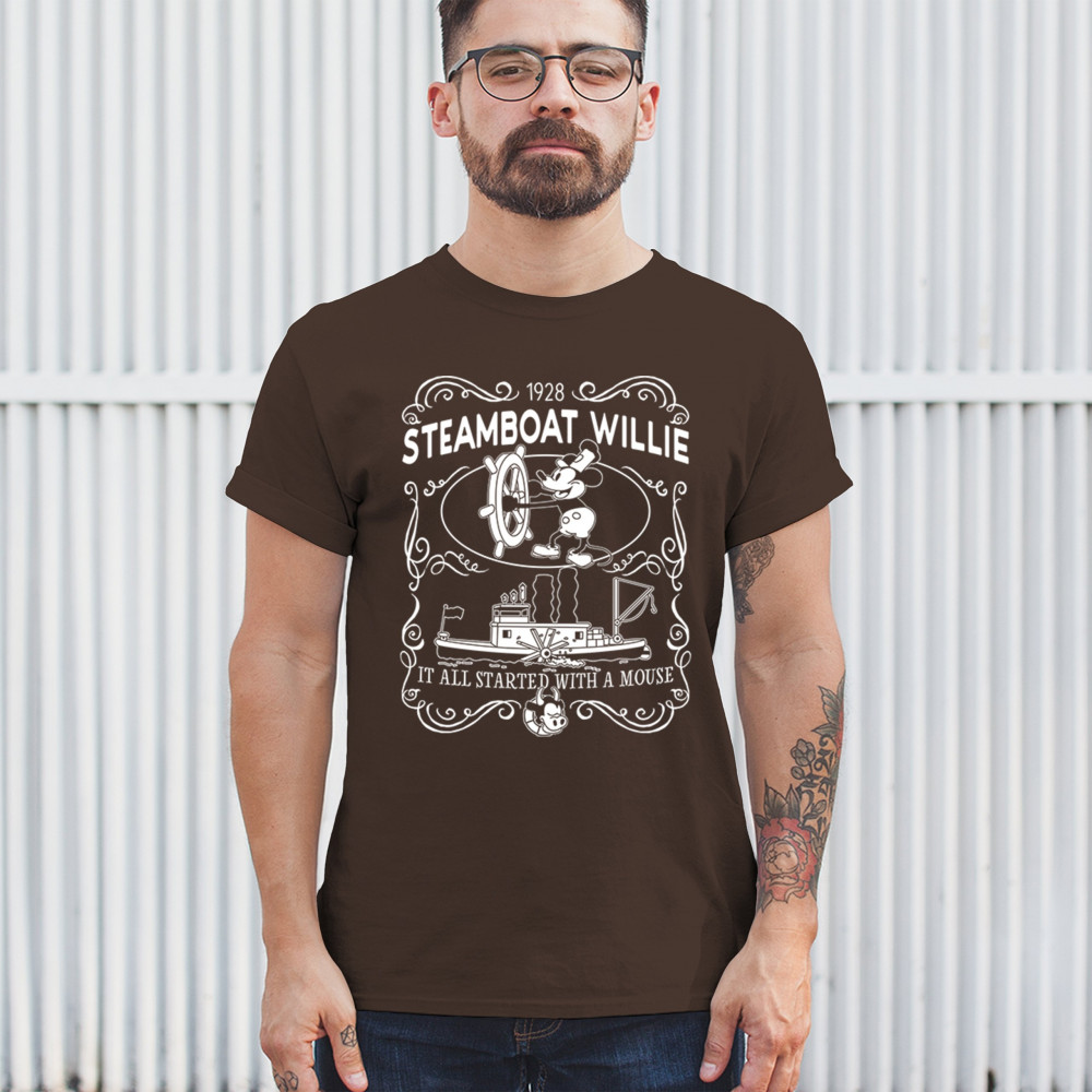 Navigate the waters of nostalgia with Steamboat Willie at the helm, accompanied by the enduring reminder, 'The magic traces back to a little friend.'
