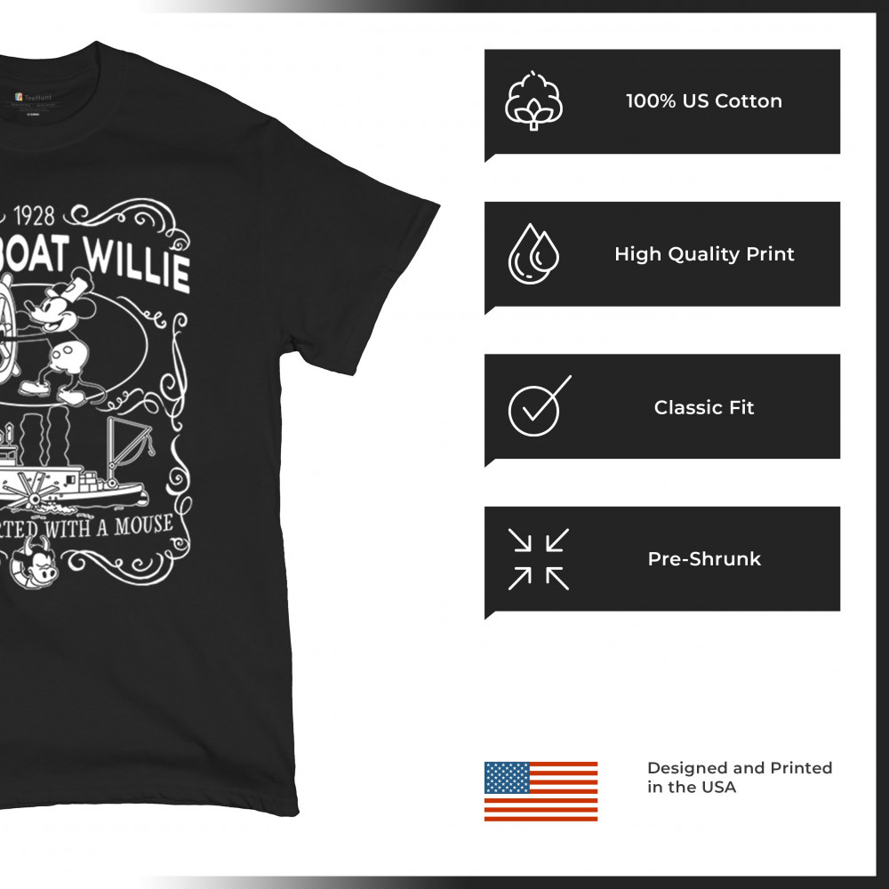 Navigate the waters of nostalgia with Steamboat Willie at the helm, accompanied by the enduring reminder, 'The magic traces back to a little friend.'