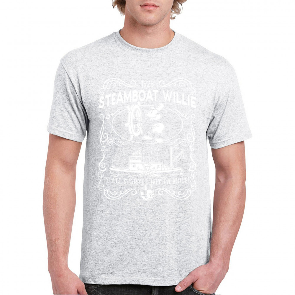 Set sail through the annals of animation as Steamboat Willie commands the vessel, echoing the timeless refrain, 'It all began with a mouse.