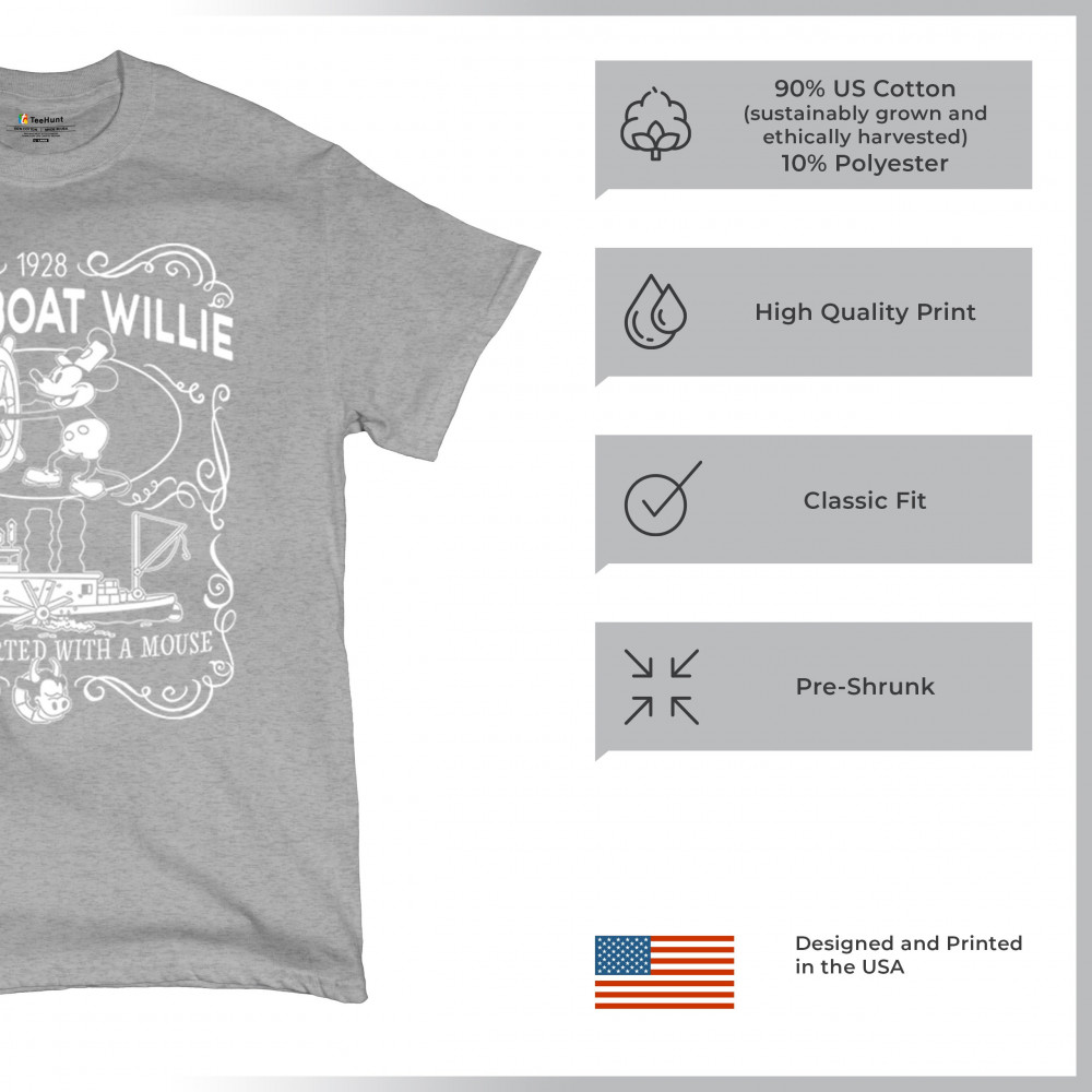 Navigate the waters of nostalgia with Steamboat Willie at the helm, accompanied by the enduring reminder, 'The magic traces back to a little friend.'
