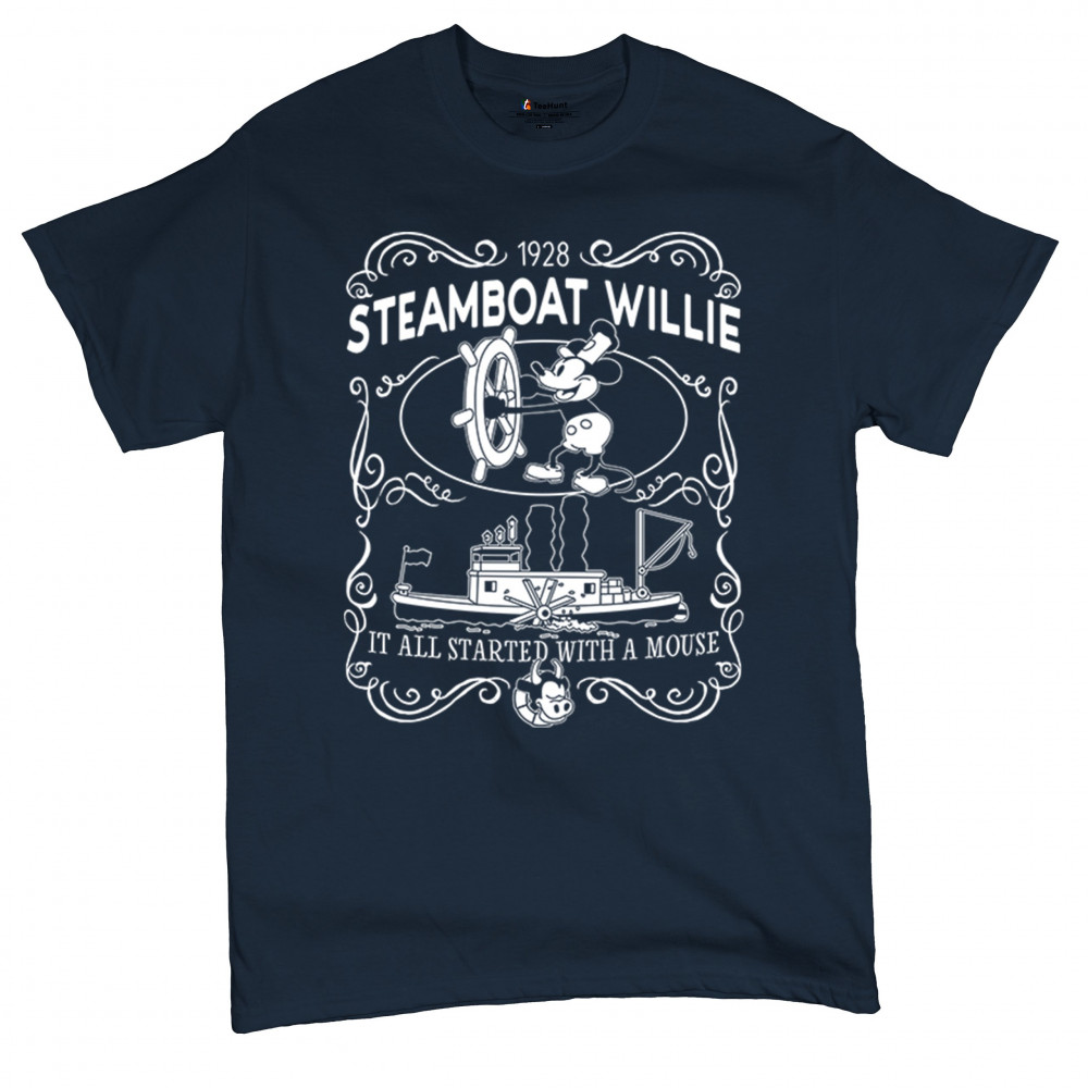 Set sail through the annals of animation as Steamboat Willie commands the vessel, echoing the timeless refrain, 'It all began with a mouse.
