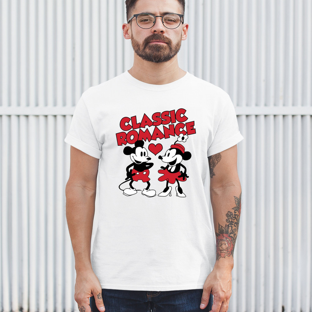 Dive into classic romance with Steamboat Willie in this heartwarming design, featuring a whimsical heart illustration capturing timeless love