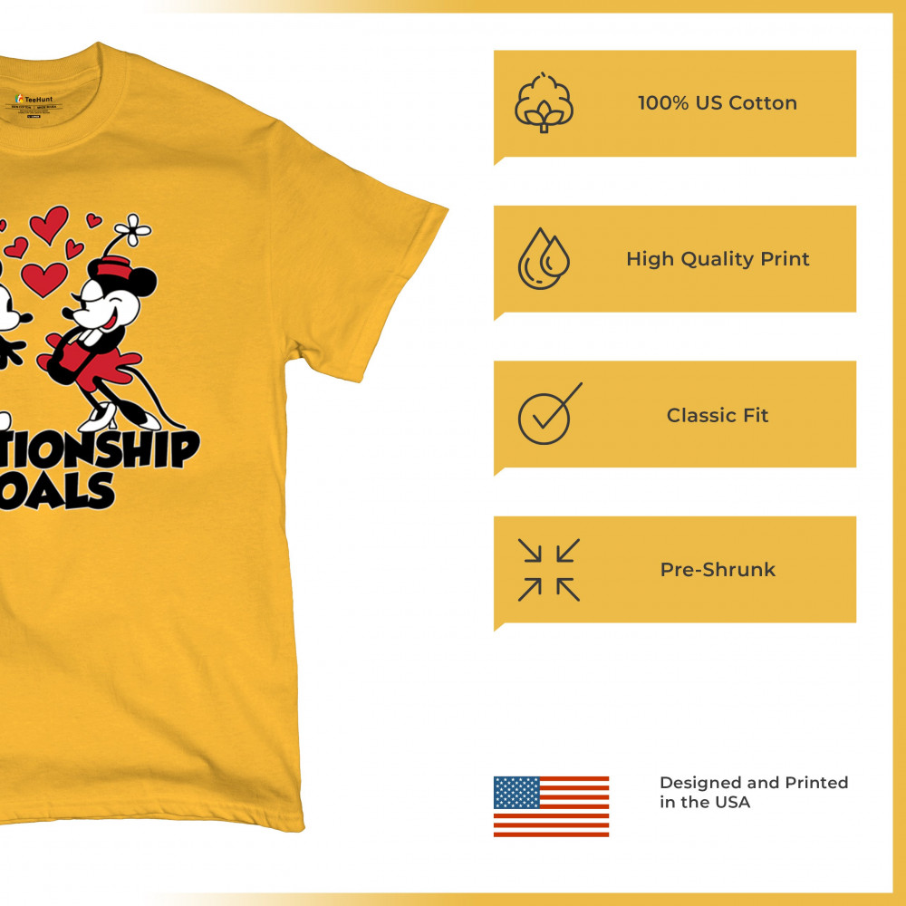 Achieve relationship goals with our 'Steamboat Willie Relationship Goals' design, celebrating the timeless tradition of this iconic cartoon. Perfect for beach days and family vacations, let Steamboat Willie inspire nostalgia and fun. Embrace the magic of