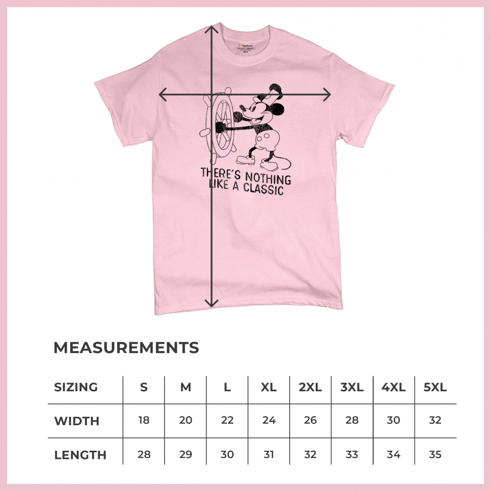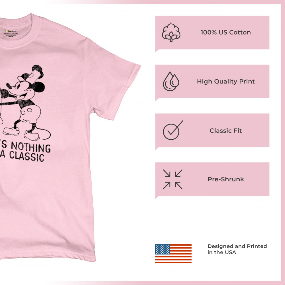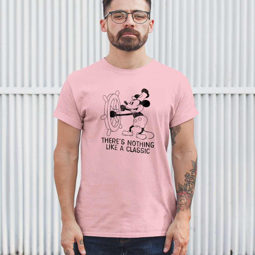 Embrace the magic of an American classic with our 'There is Nothing Like a Classic' tee, featuring Steamboat Willie. Paying homage to the iconic 1928 cartoon, this design is sure to inspire memories of family vacations and timeless traditions. Let the charm of this classic cartoon transport you to a simpler time.