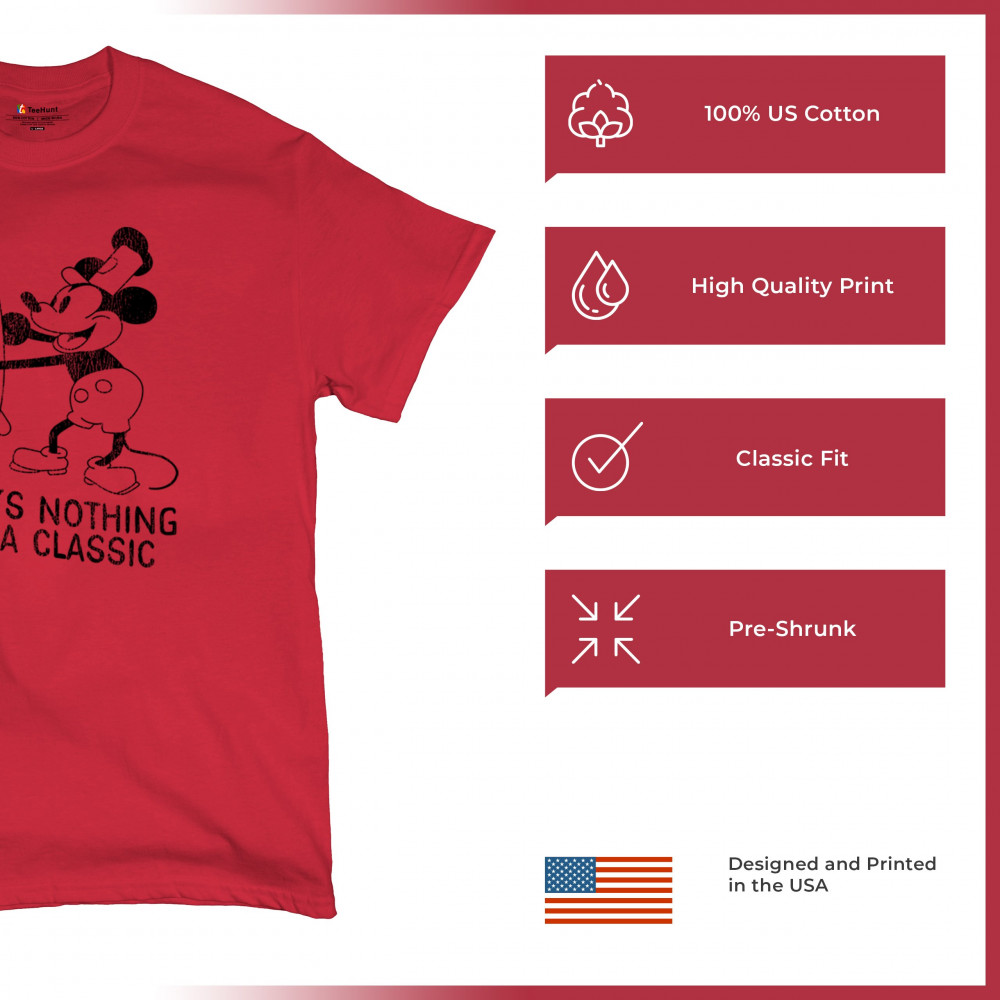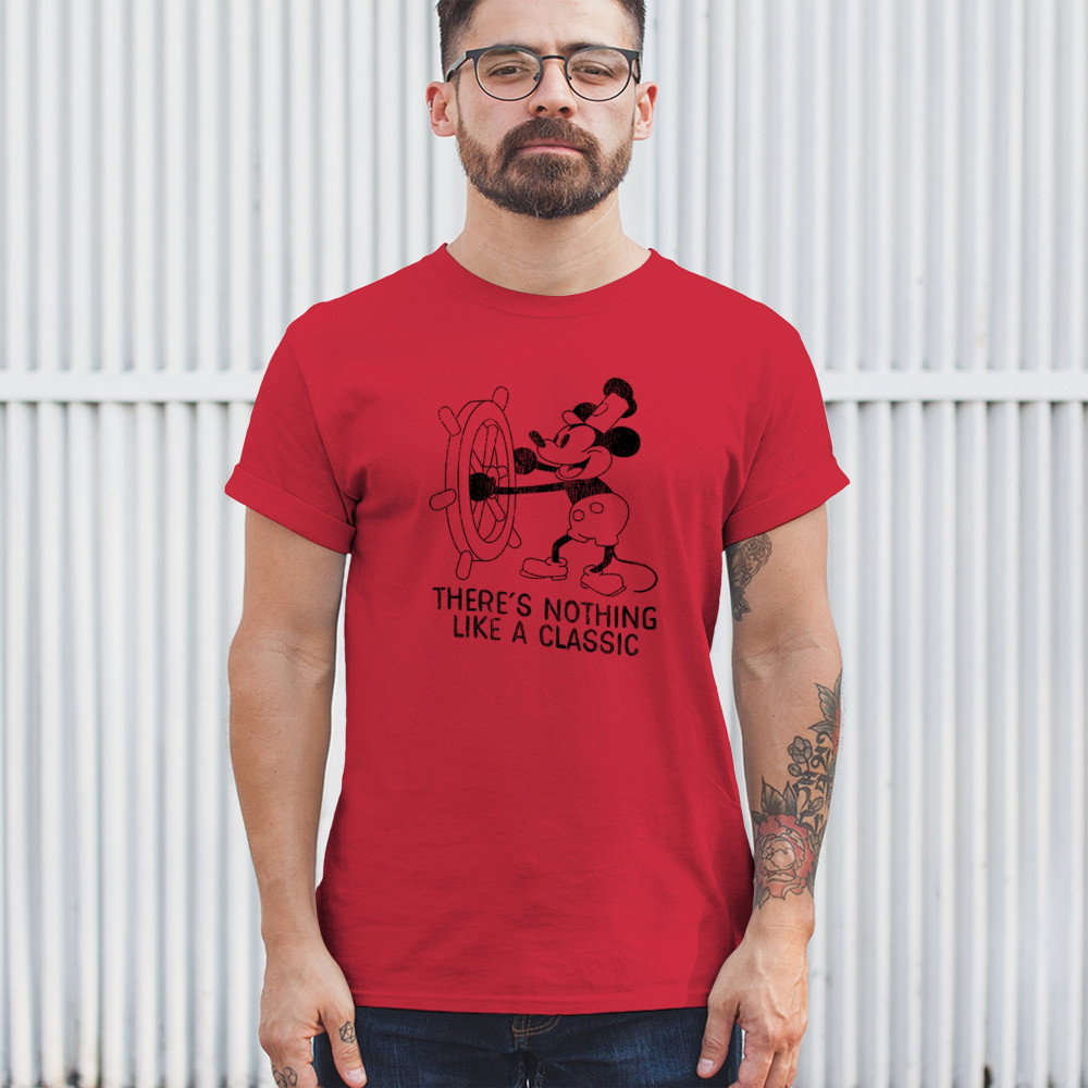 Embrace the magic of an American classic with our 'There is Nothing Like a Classic' tee, featuring Steamboat Willie. Paying homage to the iconic 1928 cartoon, this design is sure to inspire memories of family vacations and timeless traditions. Let the charm of this classic cartoon transport you to a simpler time.