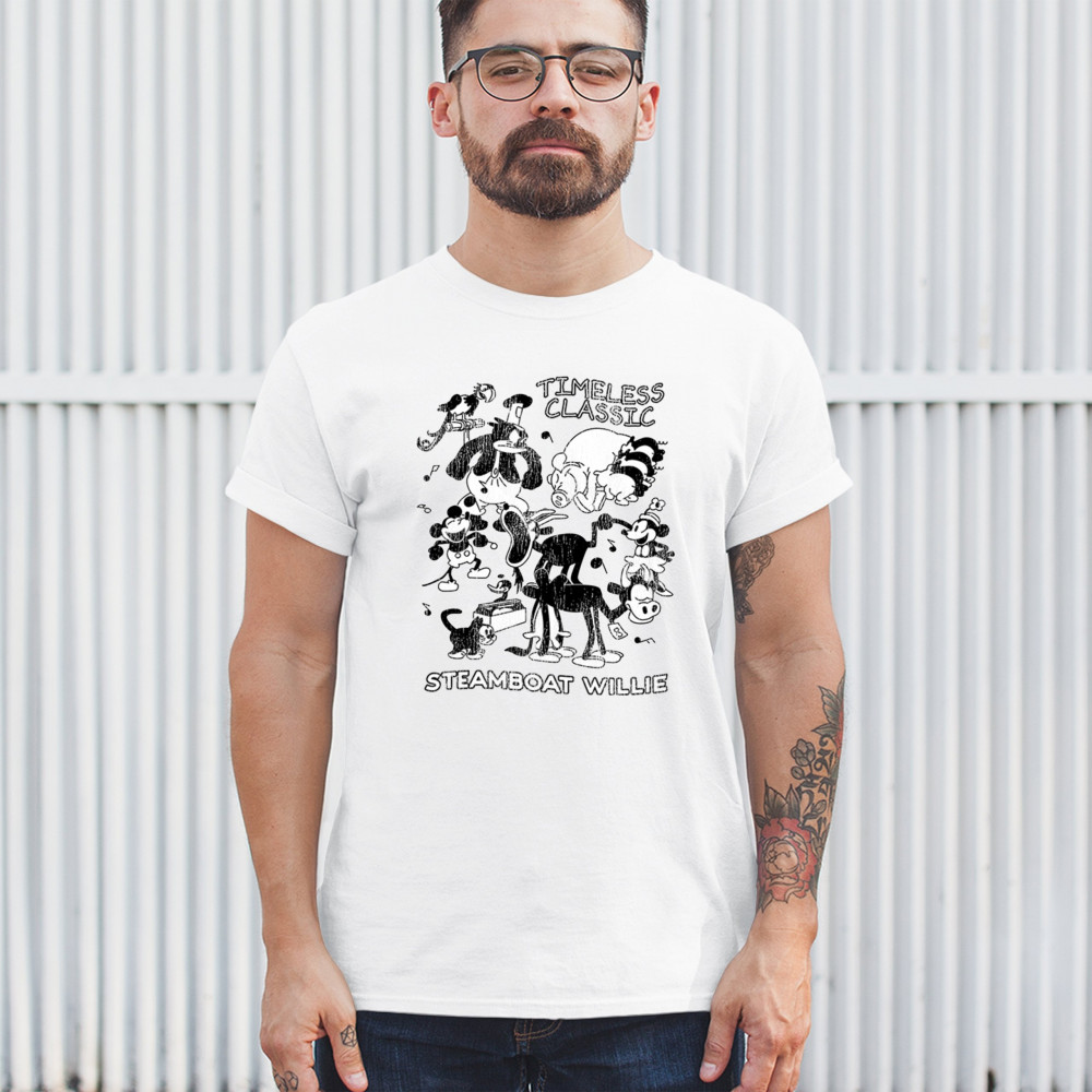 Experience the enchantment of a timeless classic with our 'Steamboat Willie Timeless Classic' design. Featuring the iconic cartoon character from 1928, this tee is perfect for beach days and family vacations. Let Steamboat Willie inspire fond memories and