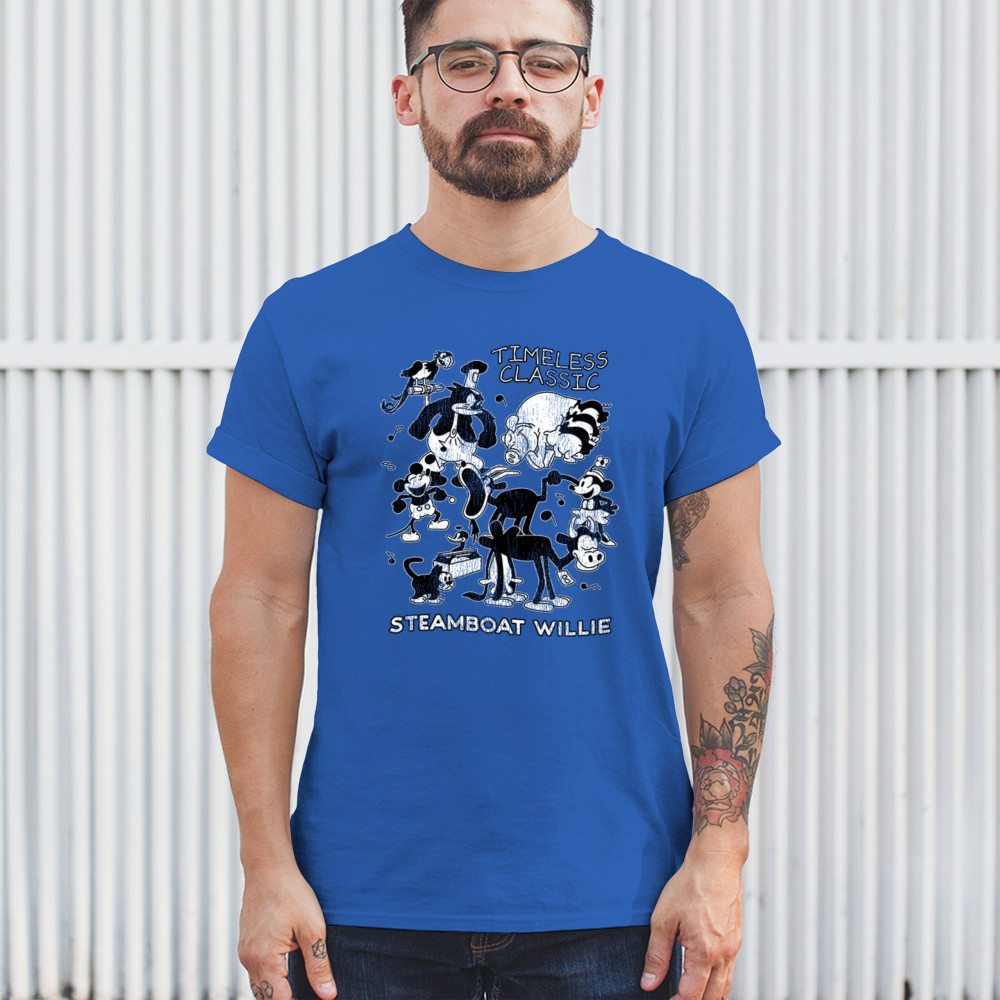 Experience the enchantment of a timeless classic with our 'Steamboat Willie Timeless Classic' design. Featuring the iconic cartoon character from 1928, this tee is perfect for beach days and family vacations. Let Steamboat Willie inspire fond memories and