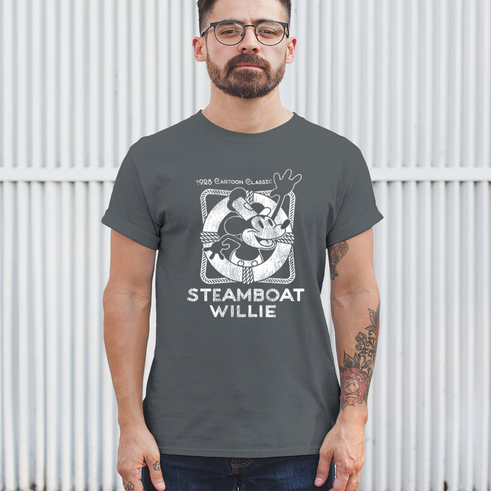 Channel the iconic charm of Steamboat Willie with our 'Steamboat Willie Vintage Life Preserver' tee. Perfect for beach days and family vacations, this design captures the magic of the 1928 classic. Whether you're lounging by the shore or patrolling as a l