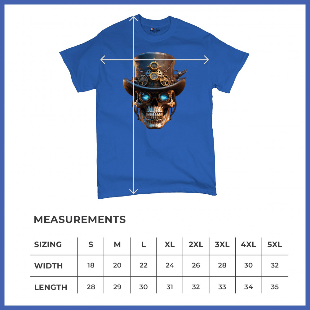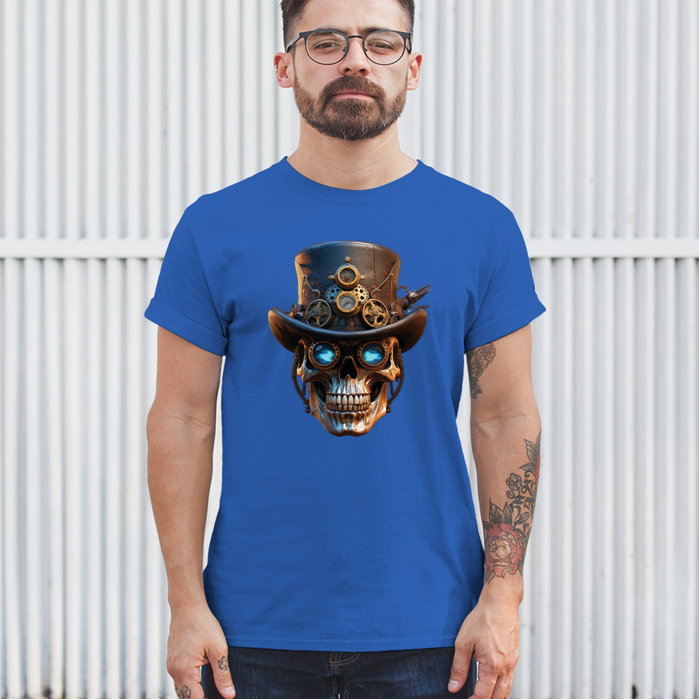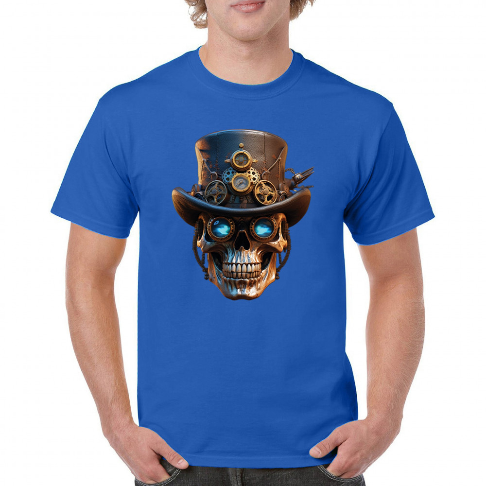 Steampunk skull shirt with gothic retro-futurism. Perfect for Halloween, cosplay, biker rallies, and edgy rebel fashion lovers.