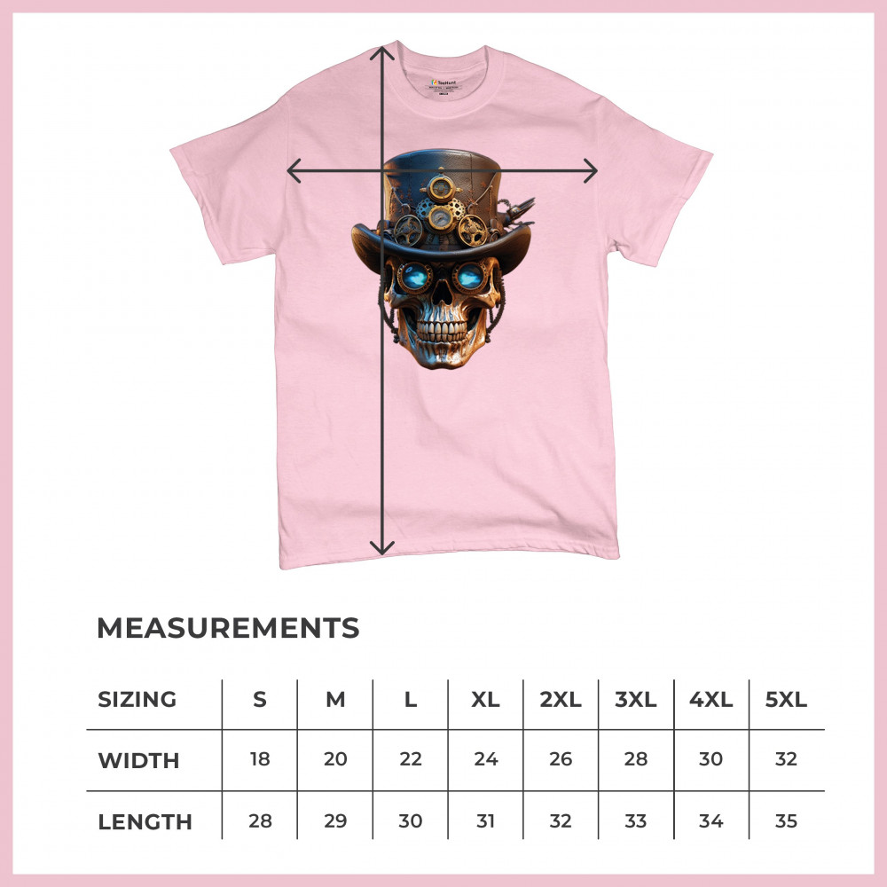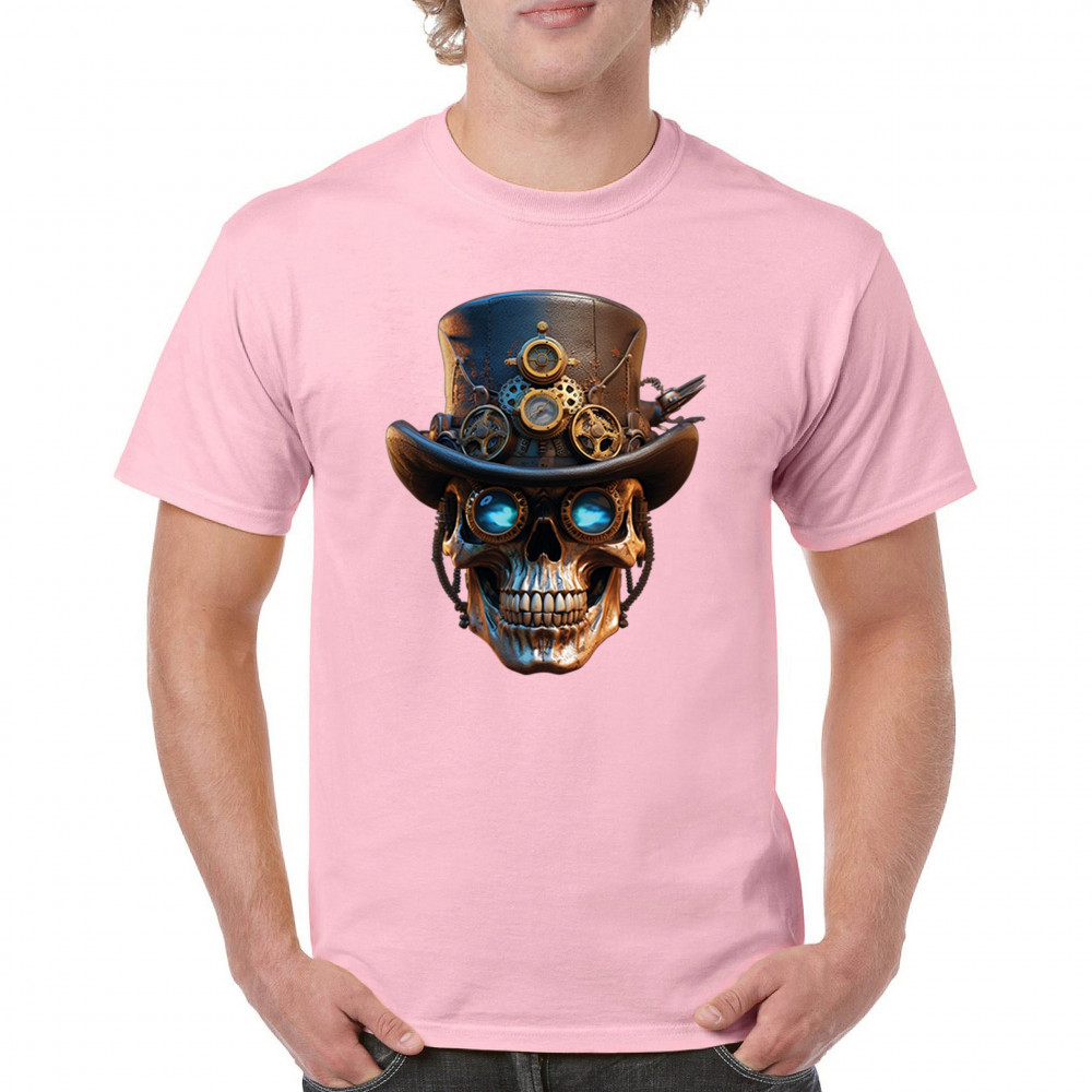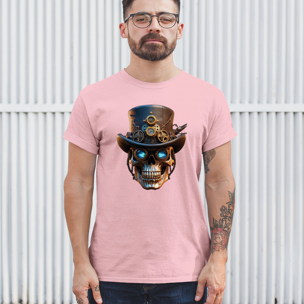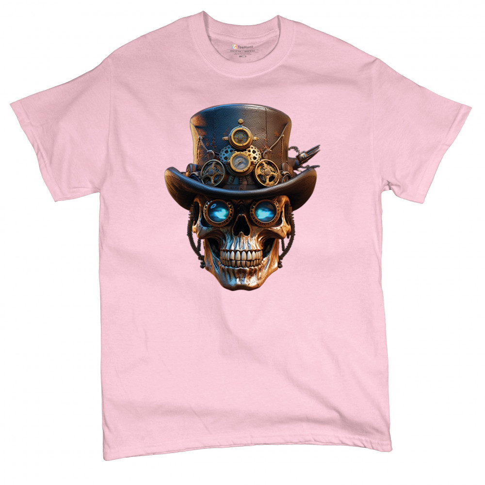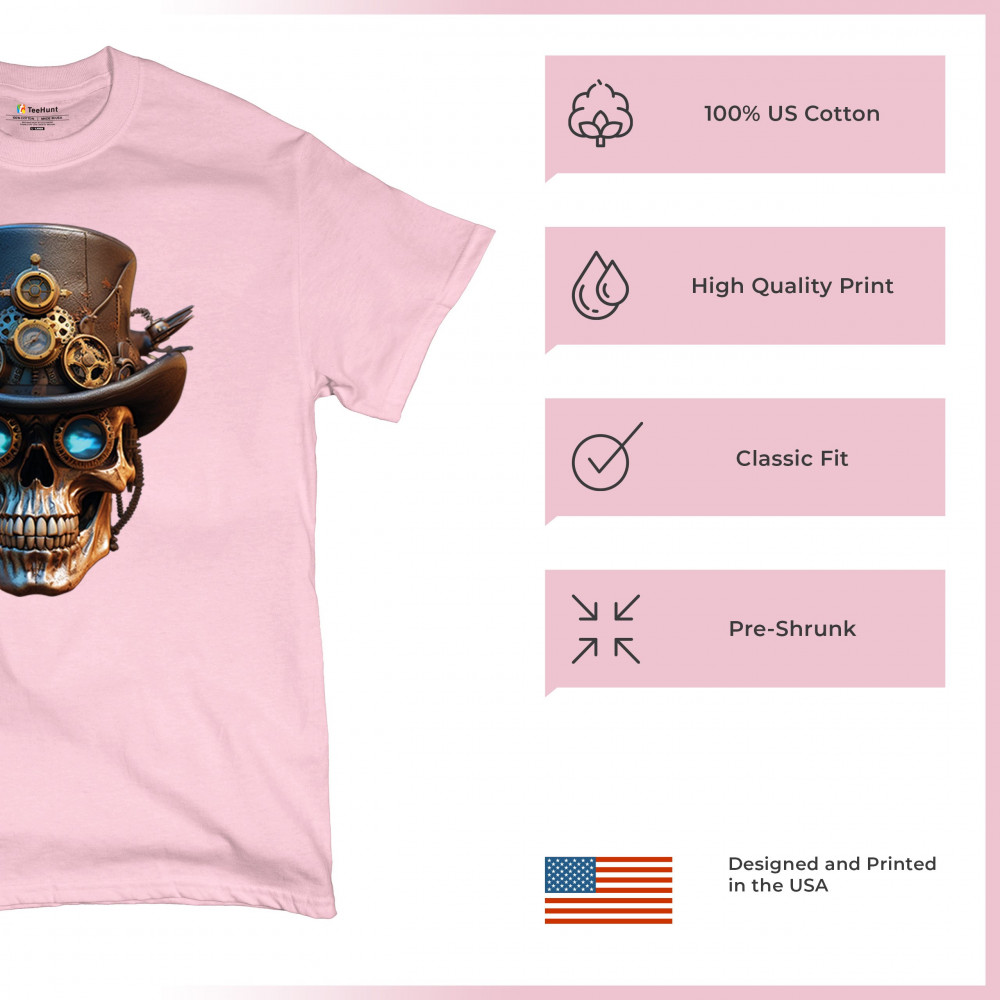 Steampunk skull shirt with gothic retro-futurism. Perfect for Halloween, cosplay, biker rallies, and edgy rebel fashion lovers.