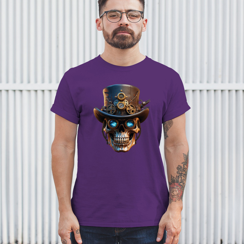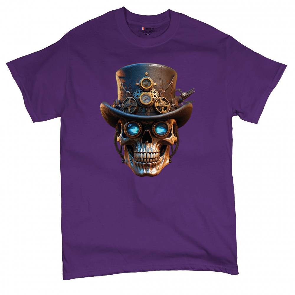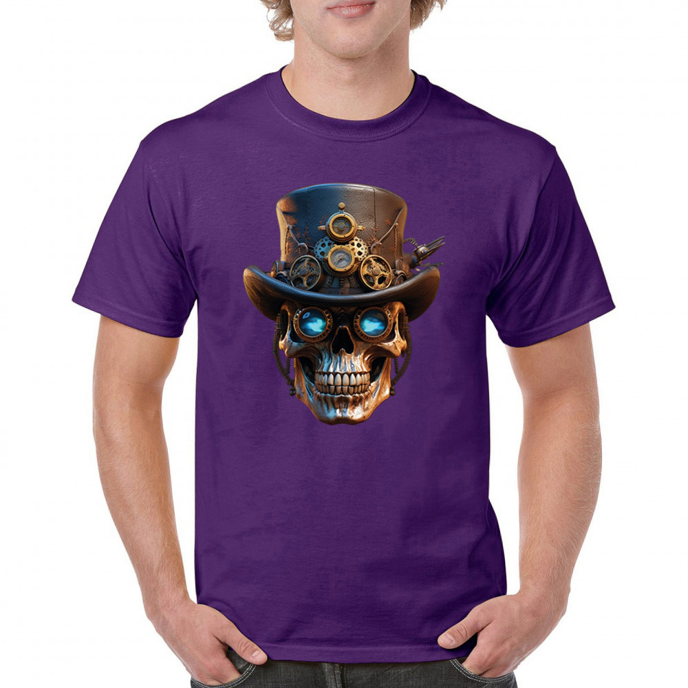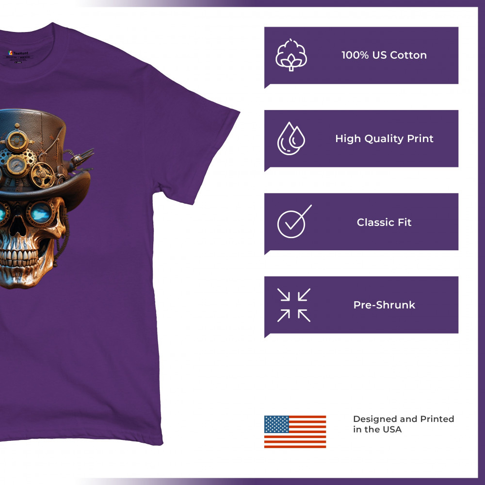Steampunk skull shirt with gothic retro-futurism. Perfect for Halloween, cosplay, biker rallies, and edgy rebel fashion lovers.