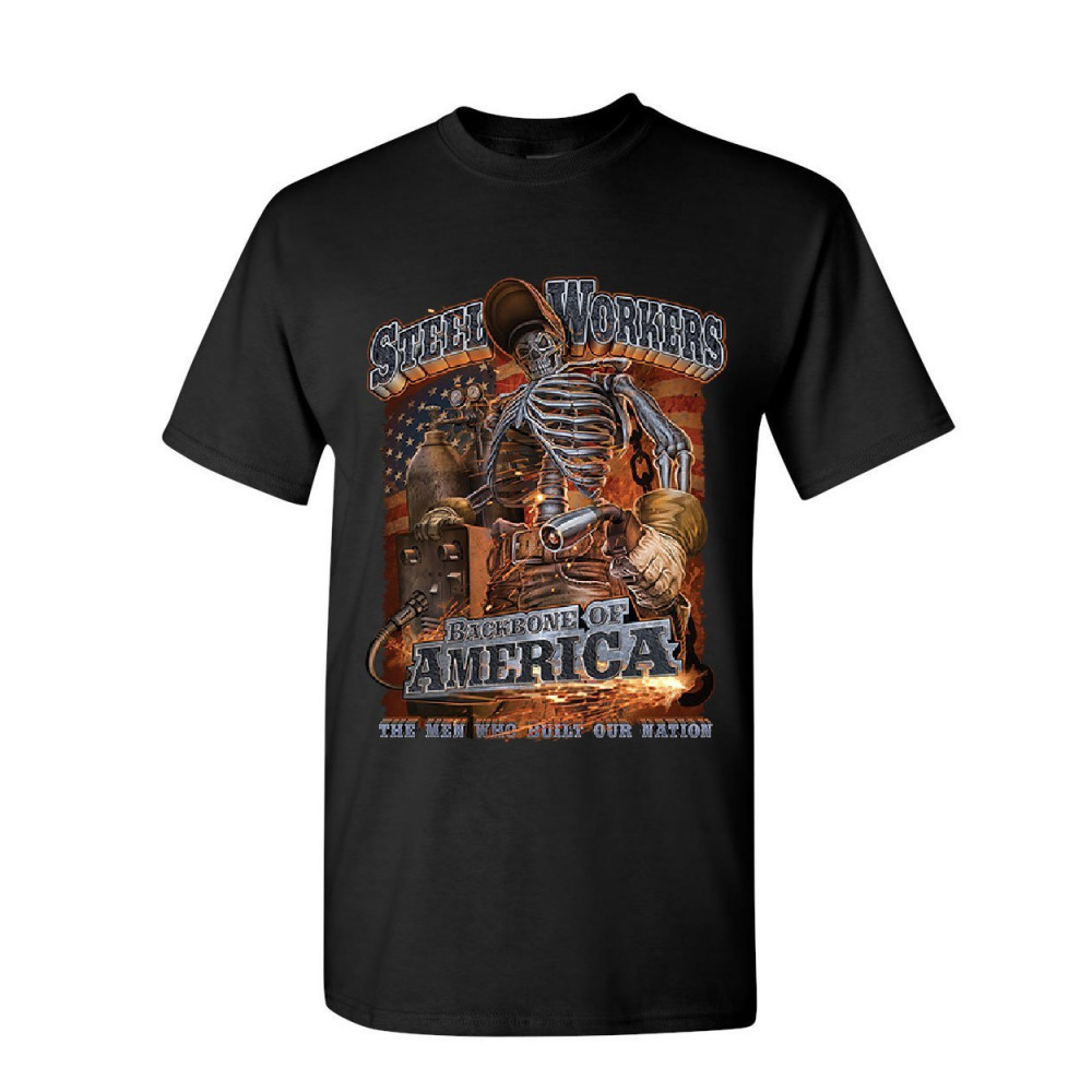 STEELWORKERS - BACKBONE OF AMERICA steel workers backbone of america t-shirt welding iron metal mens tee shirt black