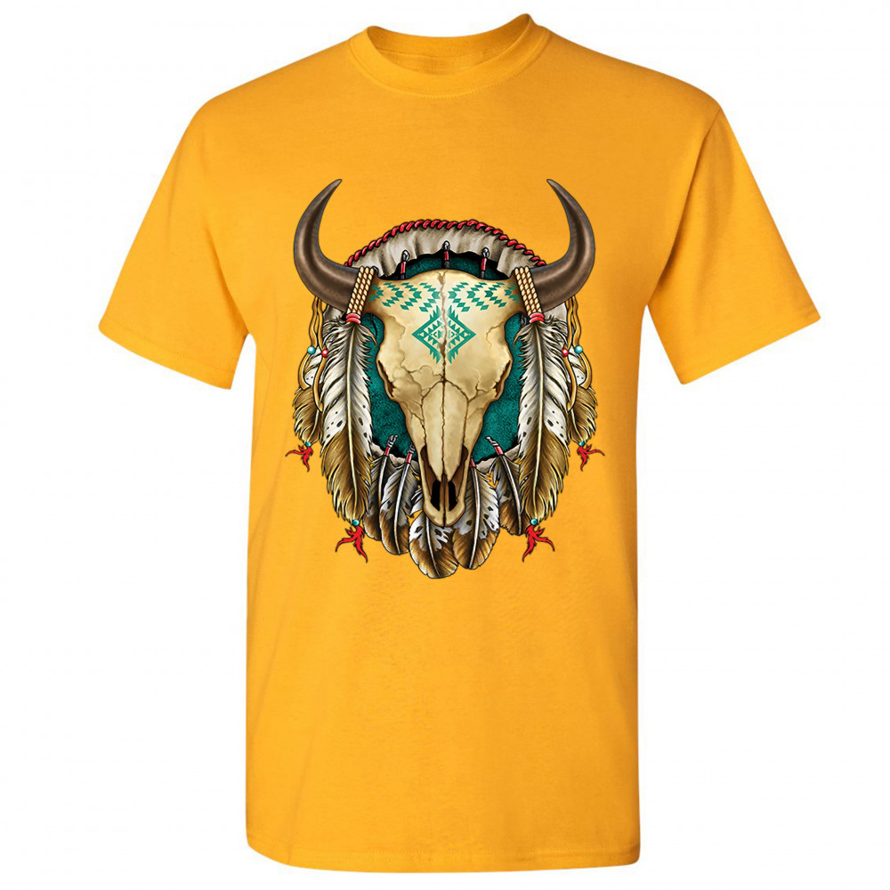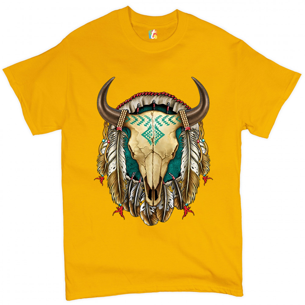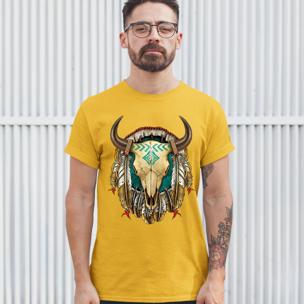 STEER SKULL DREAMCATCHER t-shirt native american indigenous culture men's tee yellow