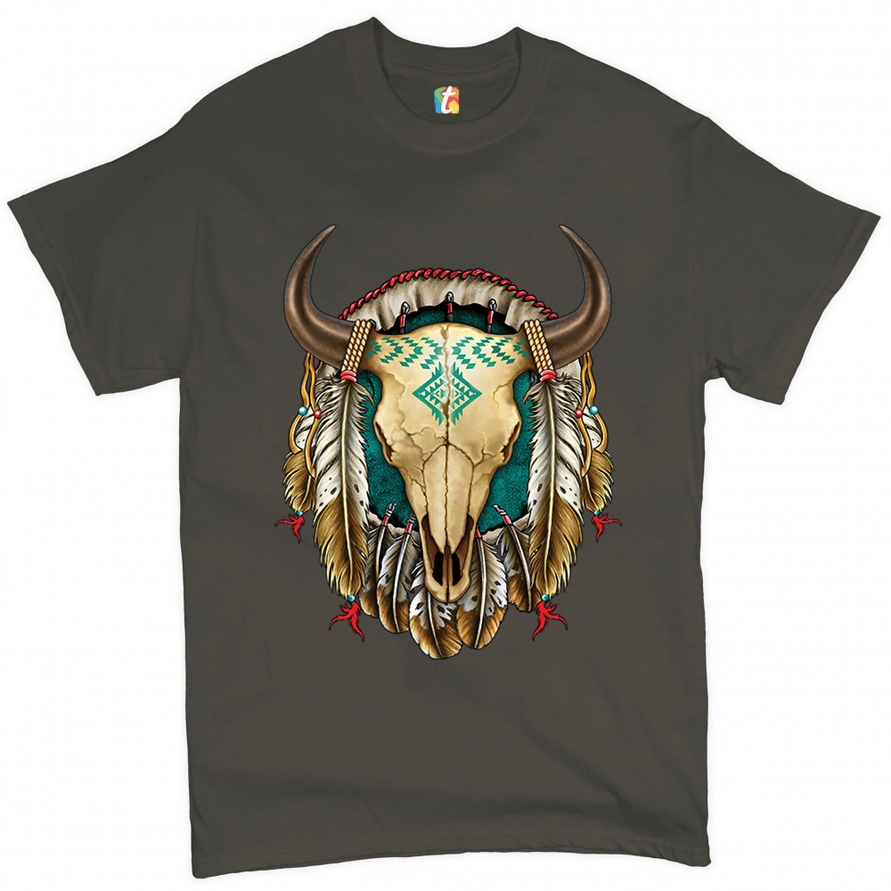 STEER SKULL DREAMCATCHER t-shirt native american indigenous culture men's tee charcoal