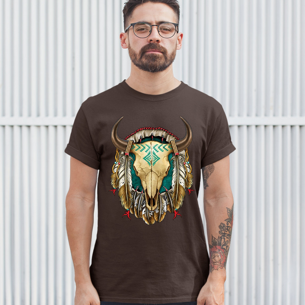 STEER SKULL DREAMCATCHER t-shirt native american indigenous culture men's tee brown