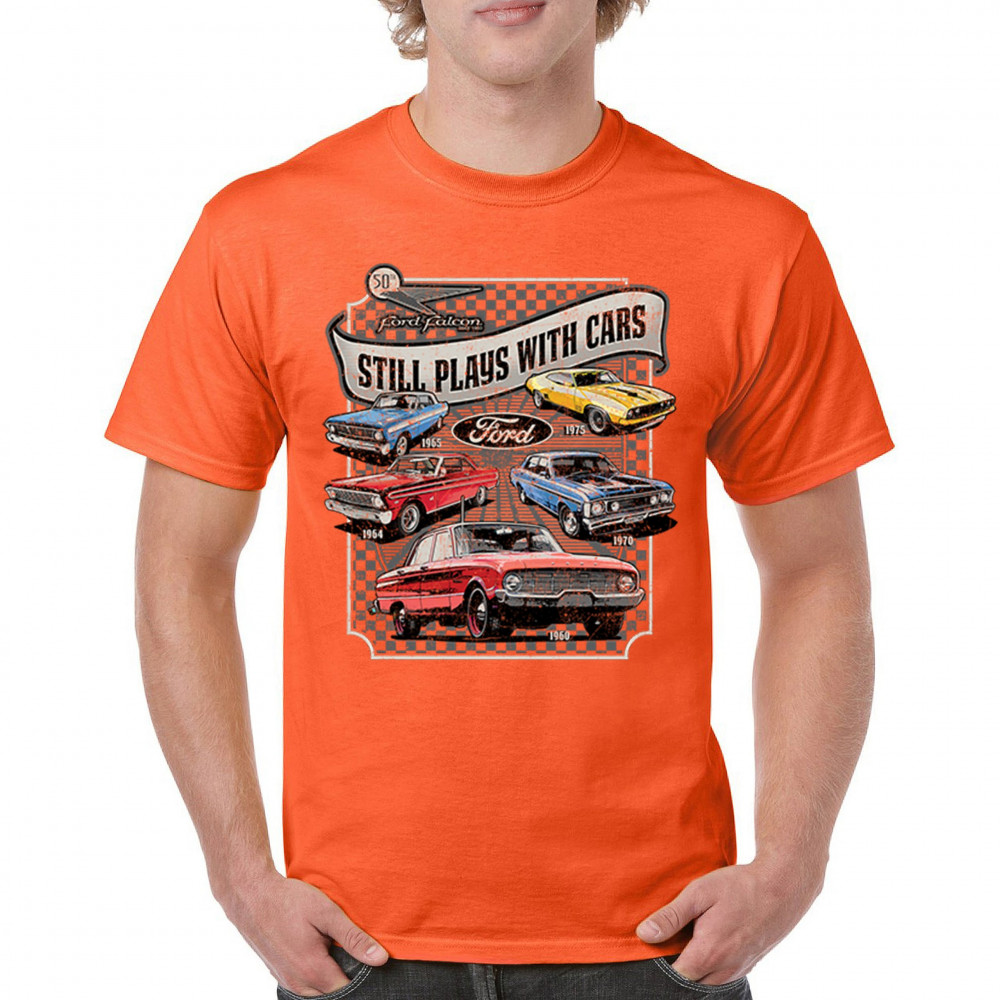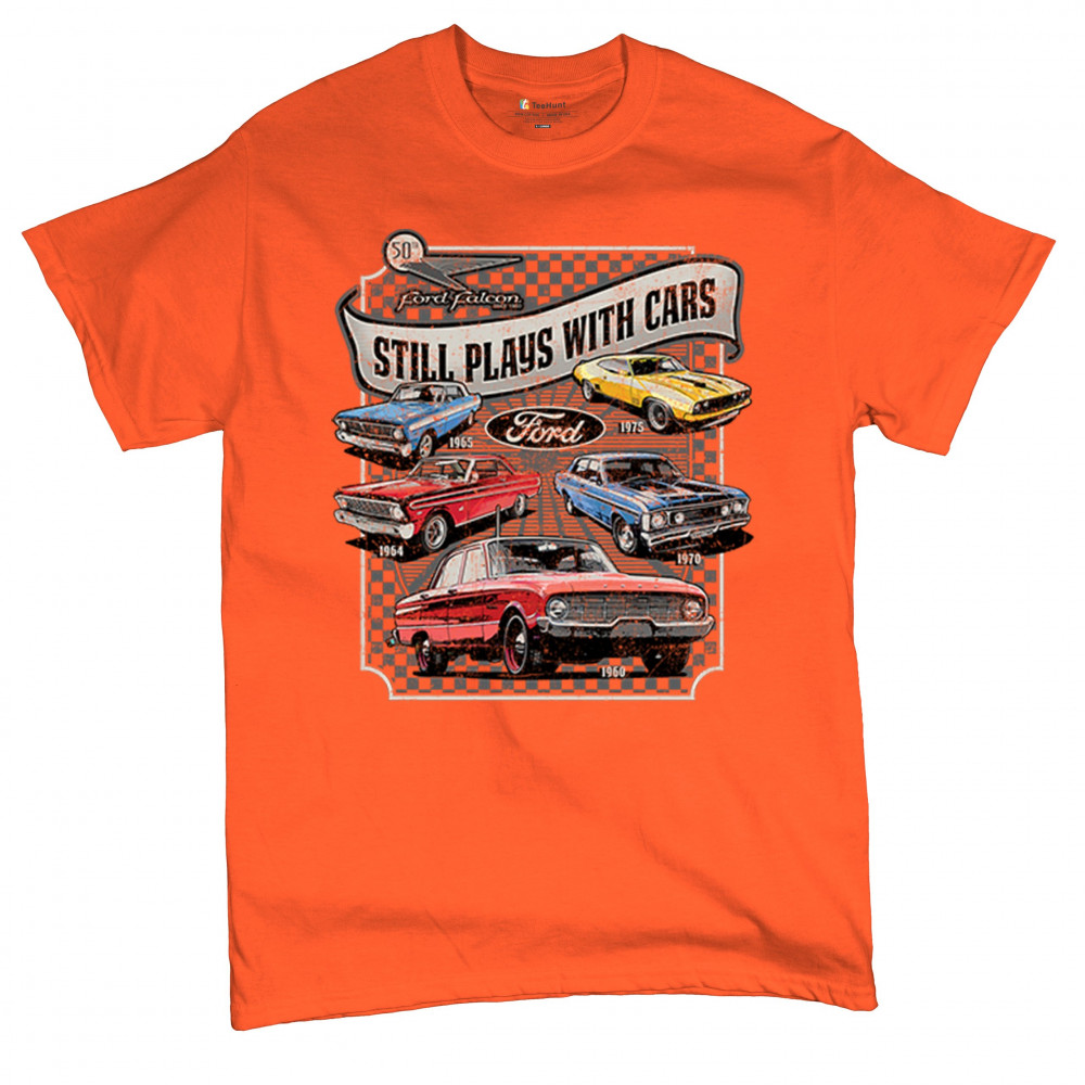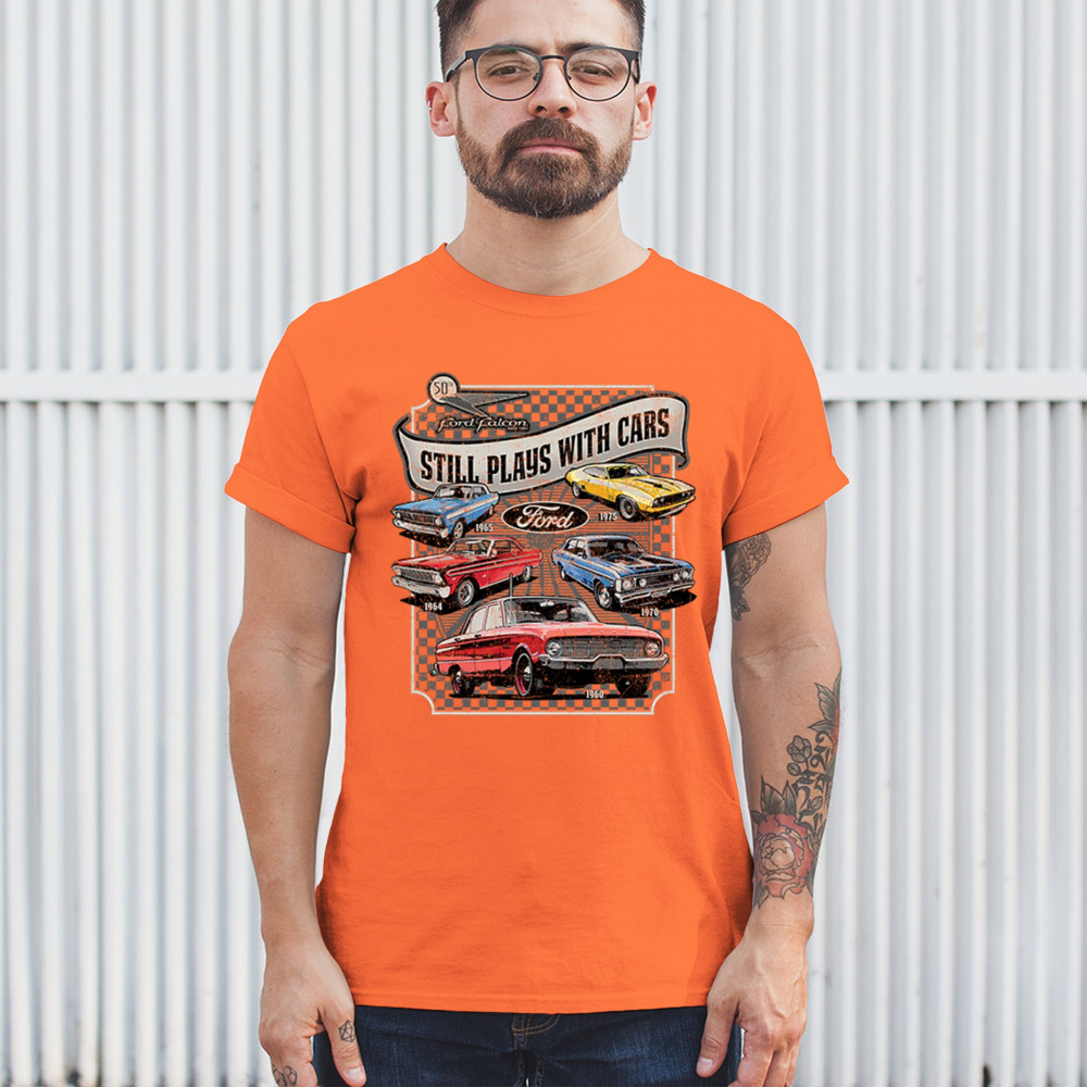 Still Plays With Cars pays tribute to the Ford Falcon, showcasing legendary models from the 60s and 70s for true vintage car lovers. Perfect for gearheads, hot rod fans, and classic car collectors, this design celebrates retro automobile culture, vintage horsepower, and old school rides. A great value piece for anyone devoted to the classic car scene.