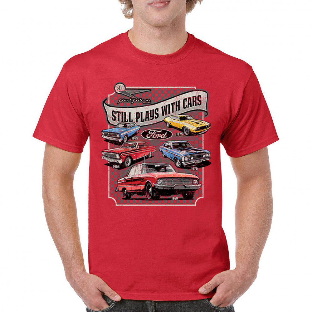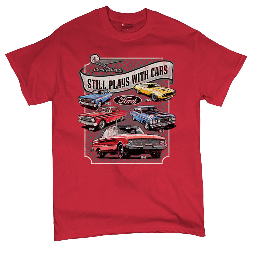 Still Plays With Cars pays tribute to the Ford Falcon, showcasing legendary models from the 60s and 70s for true vintage car lovers. Perfect for gearheads, hot rod fans, and classic car collectors, this design celebrates retro automobile culture, vintage horsepower, and old school rides. A great value piece for anyone devoted to the classic car scene.