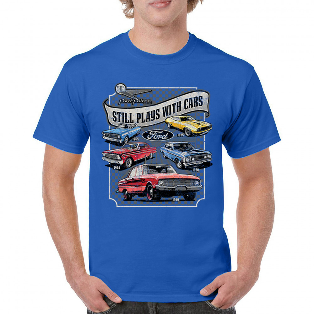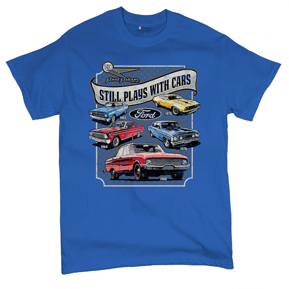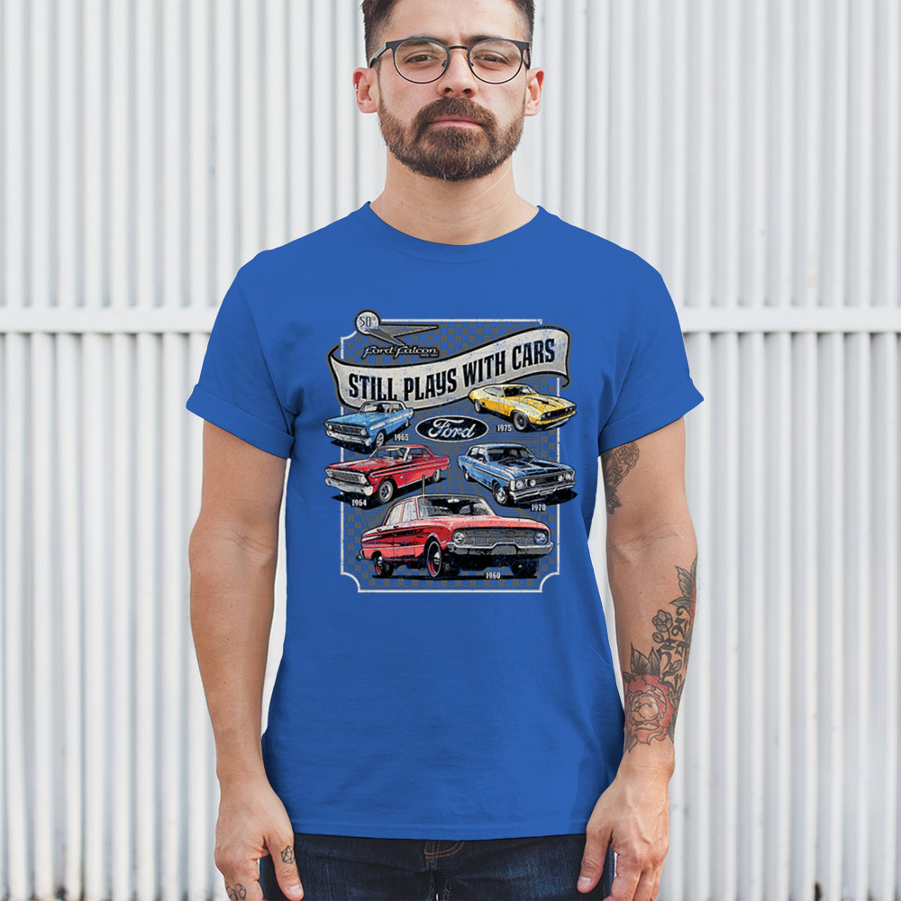 Still Plays With Cars pays tribute to the Ford Falcon, showcasing legendary models from the 60s and 70s for true vintage car lovers. Perfect for gearheads, hot rod fans, and classic car collectors, this design celebrates retro automobile culture, vintage horsepower, and old school rides. A great value piece for anyone devoted to the classic car scene.