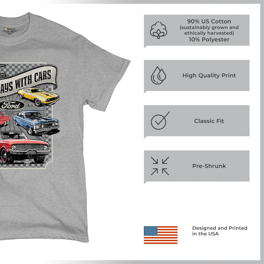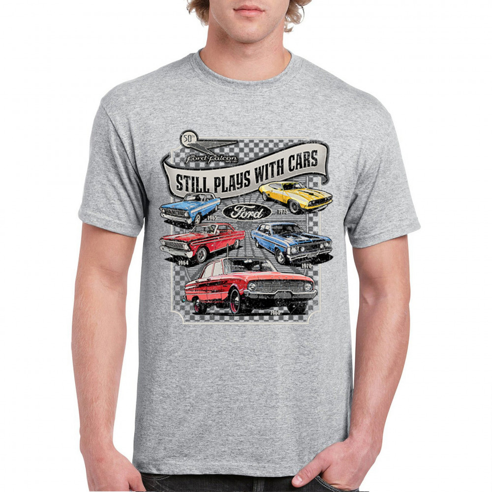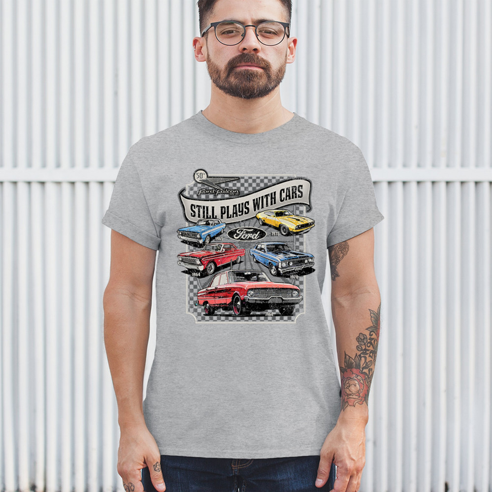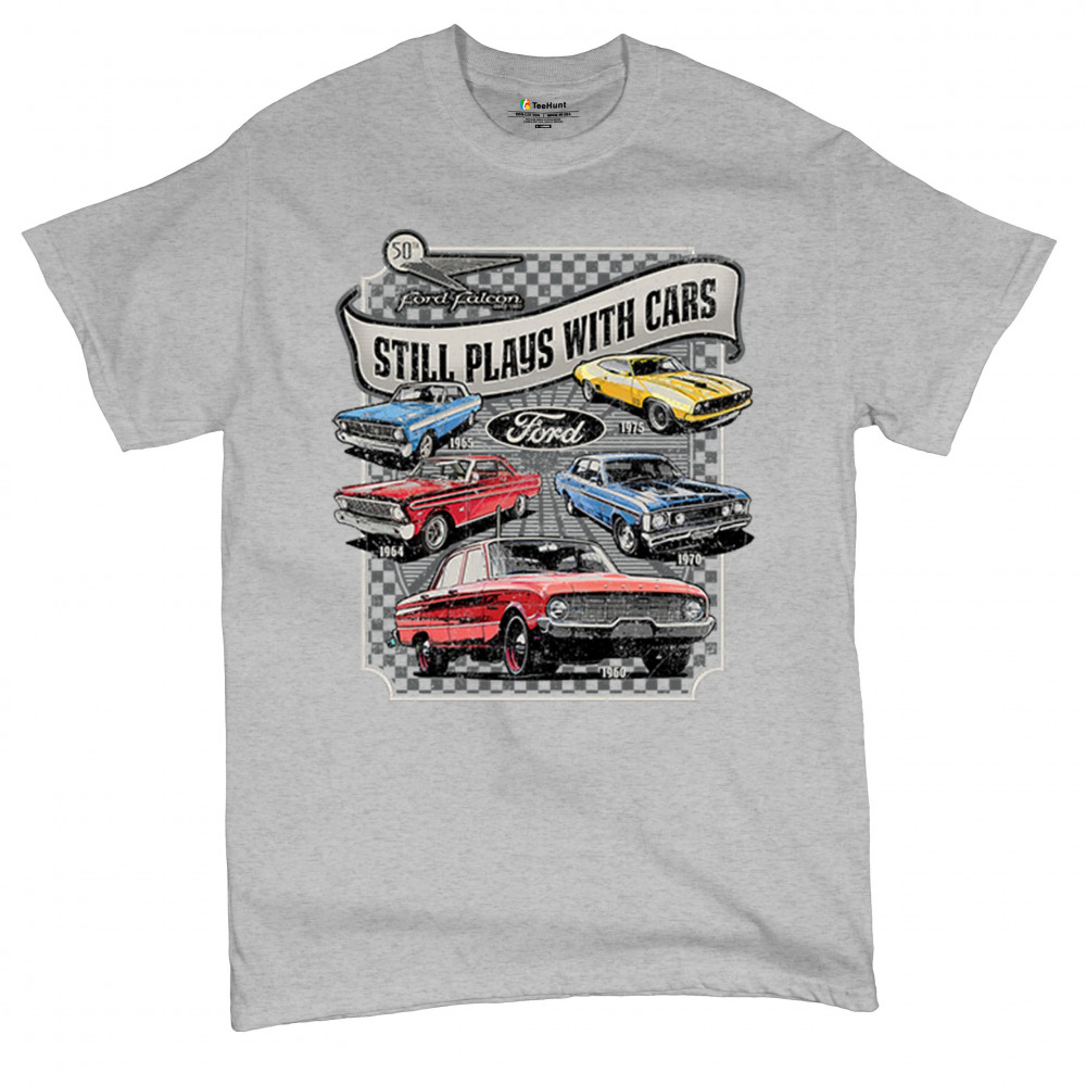 Still Plays With Cars pays tribute to the Ford Falcon, showcasing legendary models from the 60s and 70s for true vintage car lovers. Perfect for gearheads, hot rod fans, and classic car collectors, this design celebrates retro automobile culture, vintage horsepower, and old school rides. A great value piece for anyone devoted to the classic car scene.