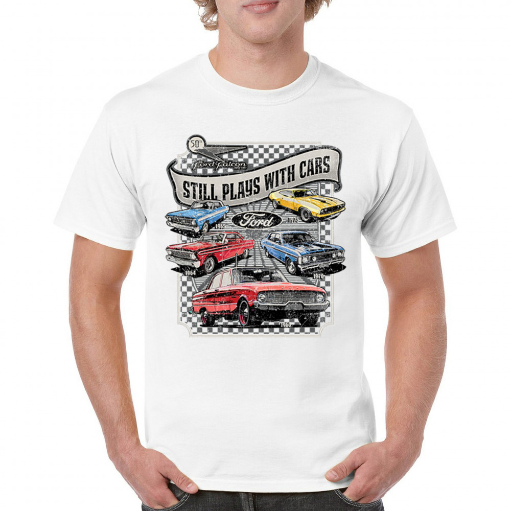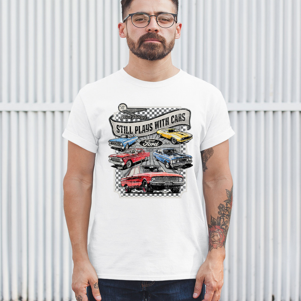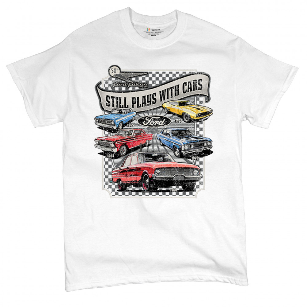 Still Plays With Cars pays tribute to the Ford Falcon, showcasing legendary models from the 60s and 70s for true vintage car lovers. Perfect for gearheads, hot rod fans, and classic car collectors, this design celebrates retro automobile culture, vintage horsepower, and old school rides. A great value piece for anyone devoted to the classic car scene.