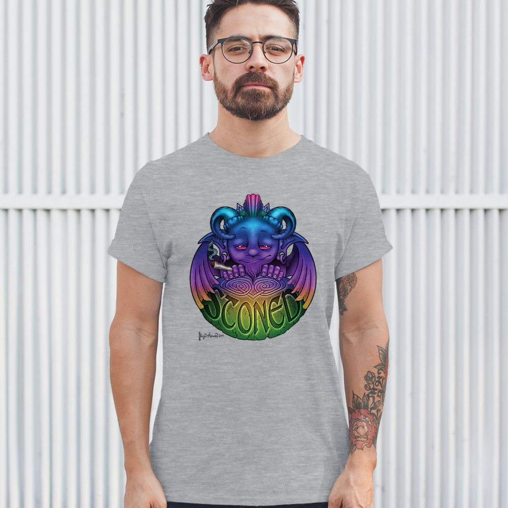 STONED GARGOYLE t-shirt pot marijuana joint funny weird 420 men's tee gray
