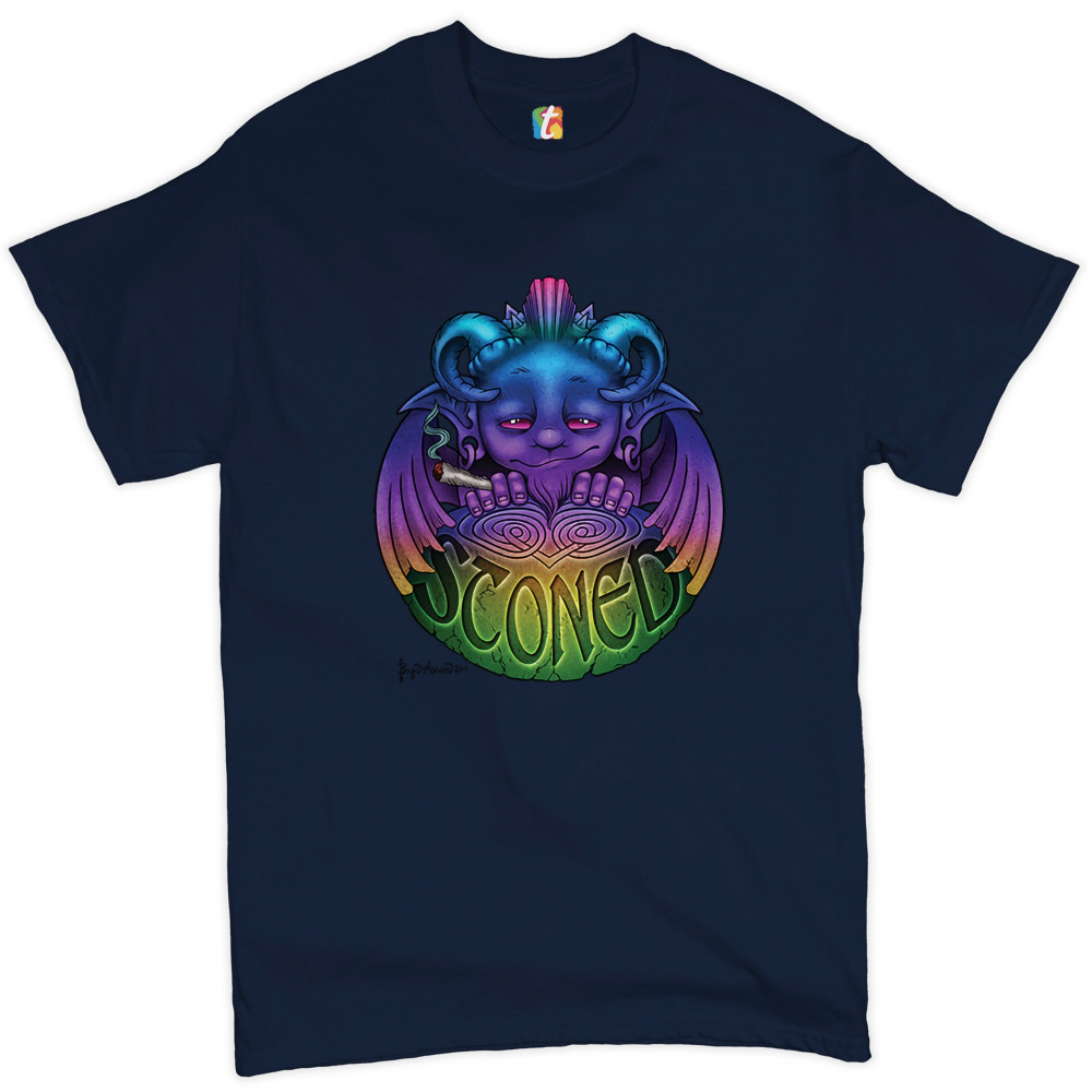 STONED GARGOYLE t-shirt pot marijuana joint funny weird 420 men's tee navy blue