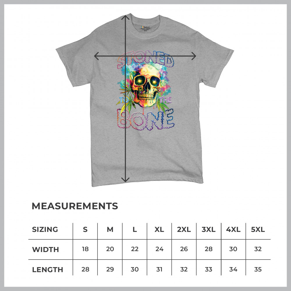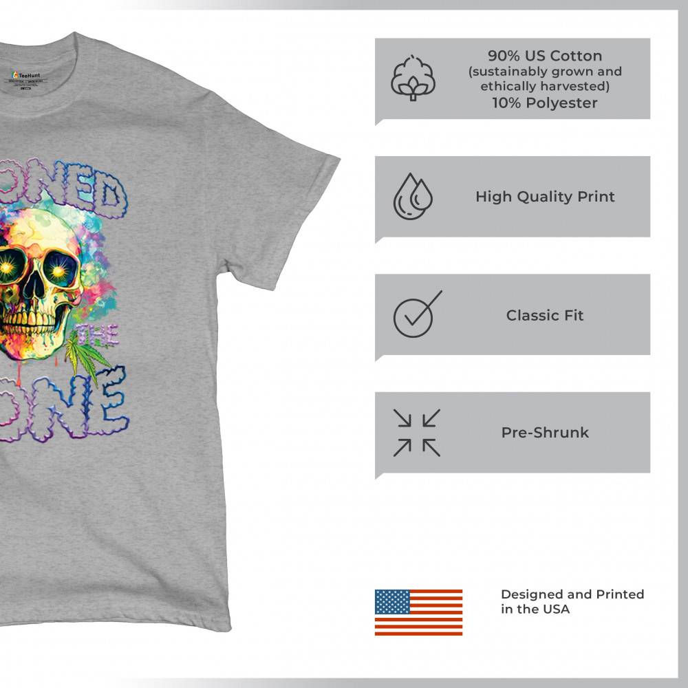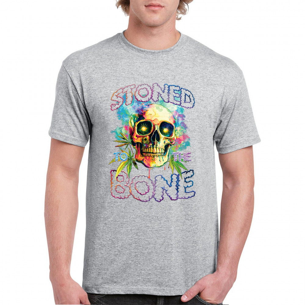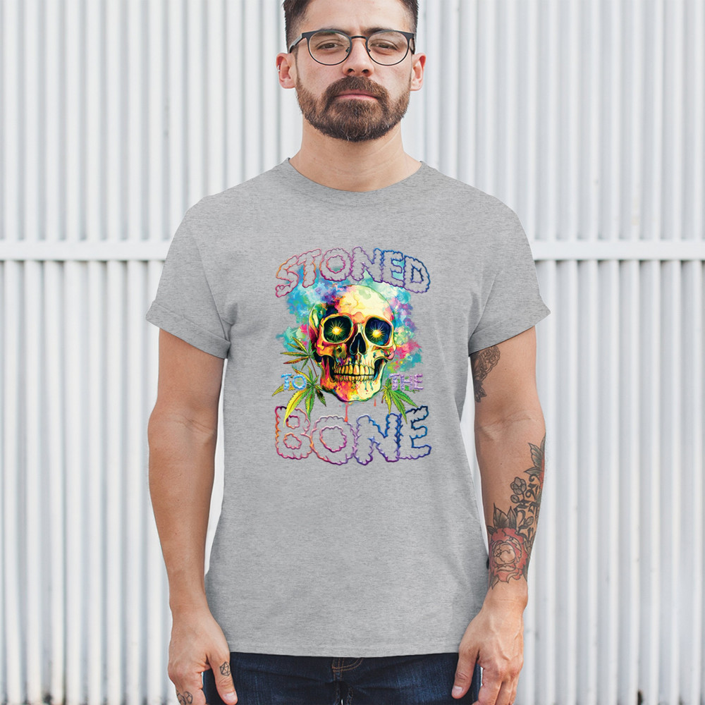 Turn heads with this bold, psychedelic “Stoned to the Bone†skull tee—loaded with neon colors, weed leaves, and a trippy aesthetic. It’s built for cannabis lovers, hippies, festival-goers, and party people living the high life. The ultimate head shop style and 420 fashion statement.