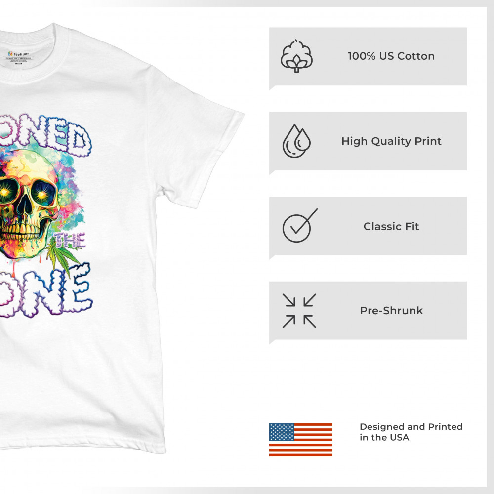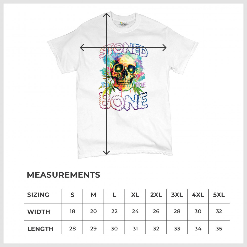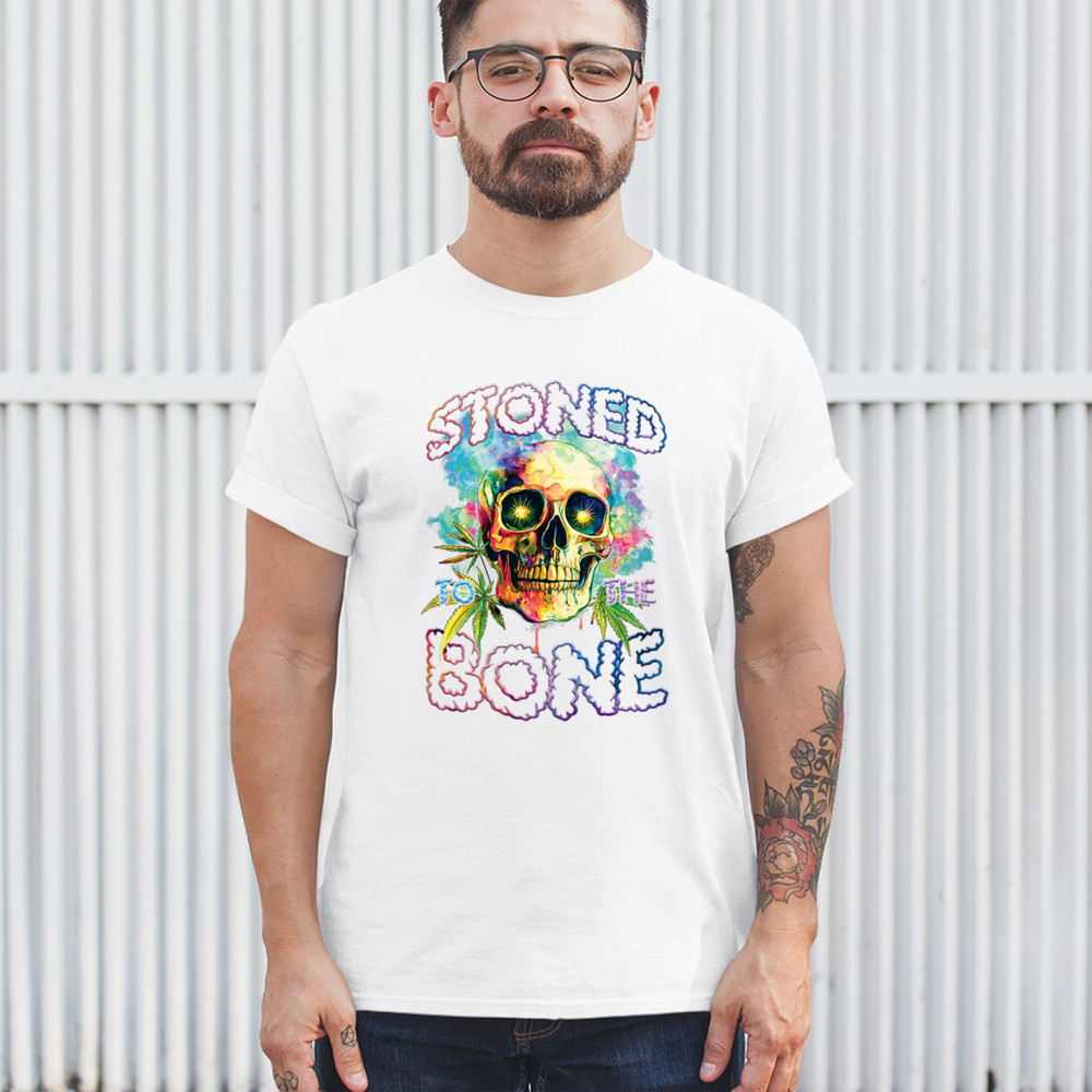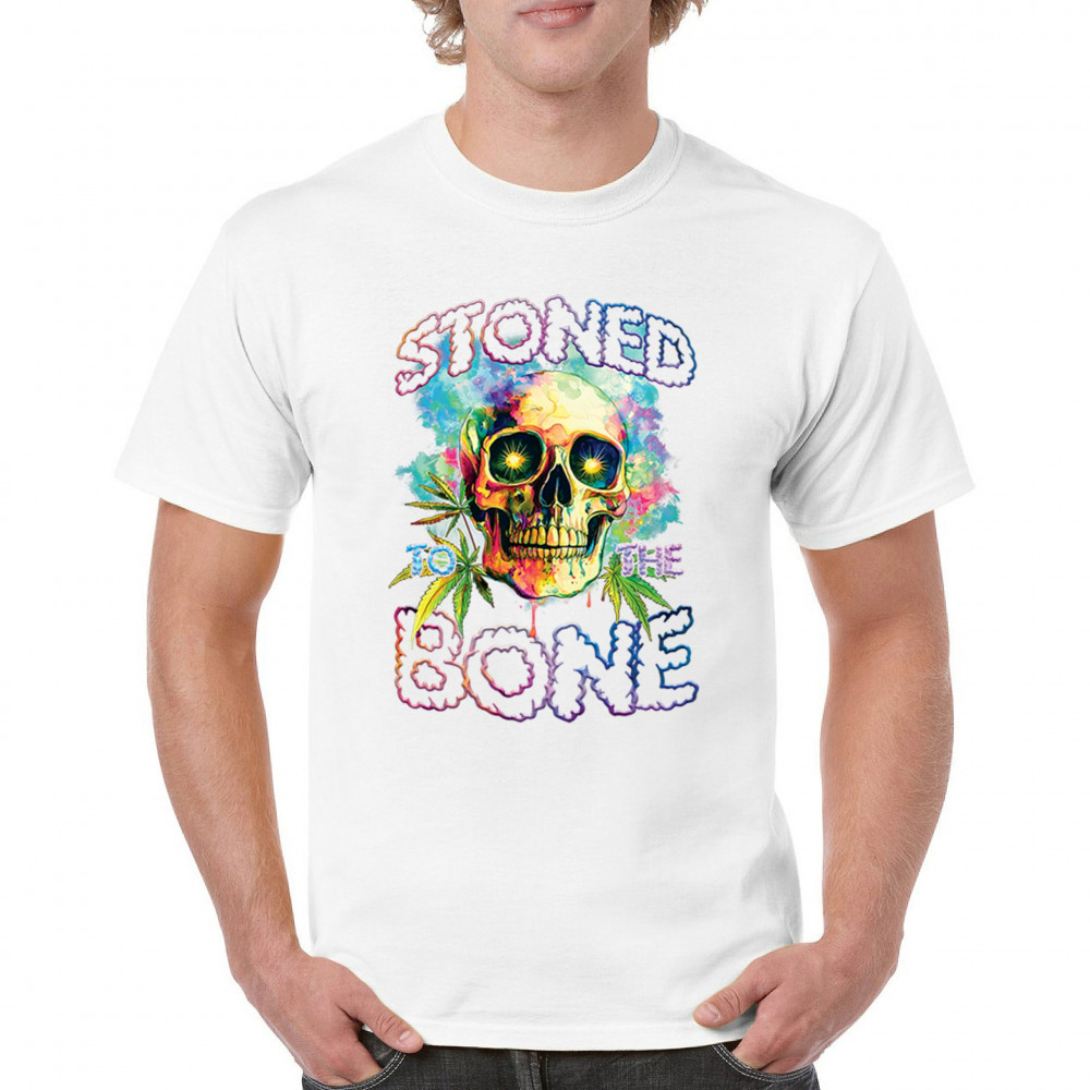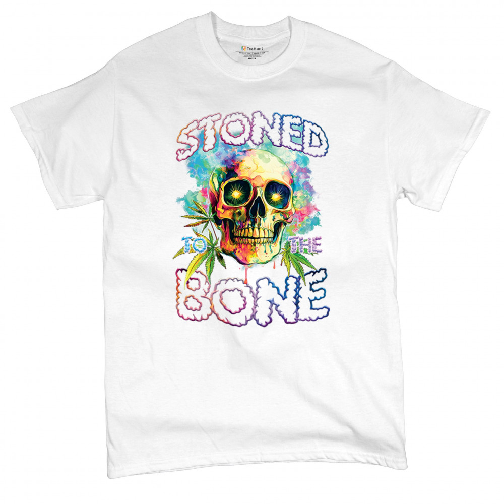 Turn heads with this bold, psychedelic “Stoned to the Bone†skull tee—loaded with neon colors, weed leaves, and a trippy aesthetic. It’s built for cannabis lovers, hippies, festival-goers, and party people living the high life. The ultimate head shop style and 420 fashion statement.