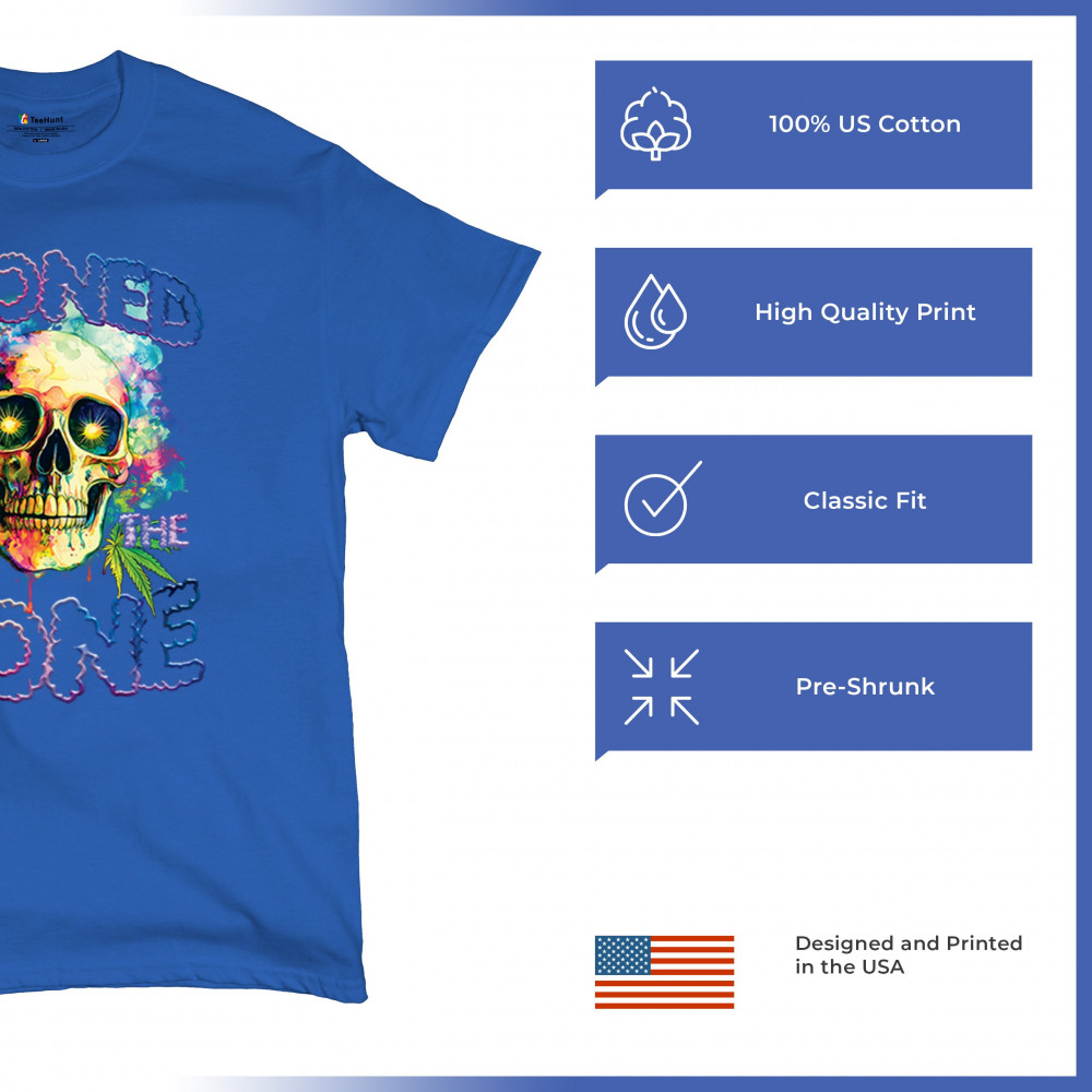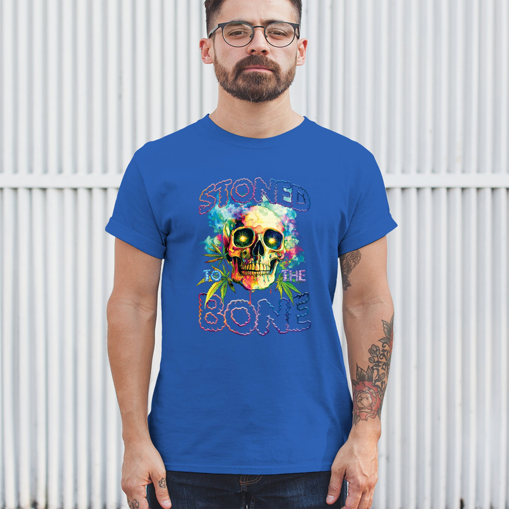 Turn heads with this bold, psychedelic “Stoned to the Bone†skull tee—loaded with neon colors, weed leaves, and a trippy aesthetic. It’s built for cannabis lovers, hippies, festival-goers, and party people living the high life. The ultimate head shop style and 420 fashion statement.