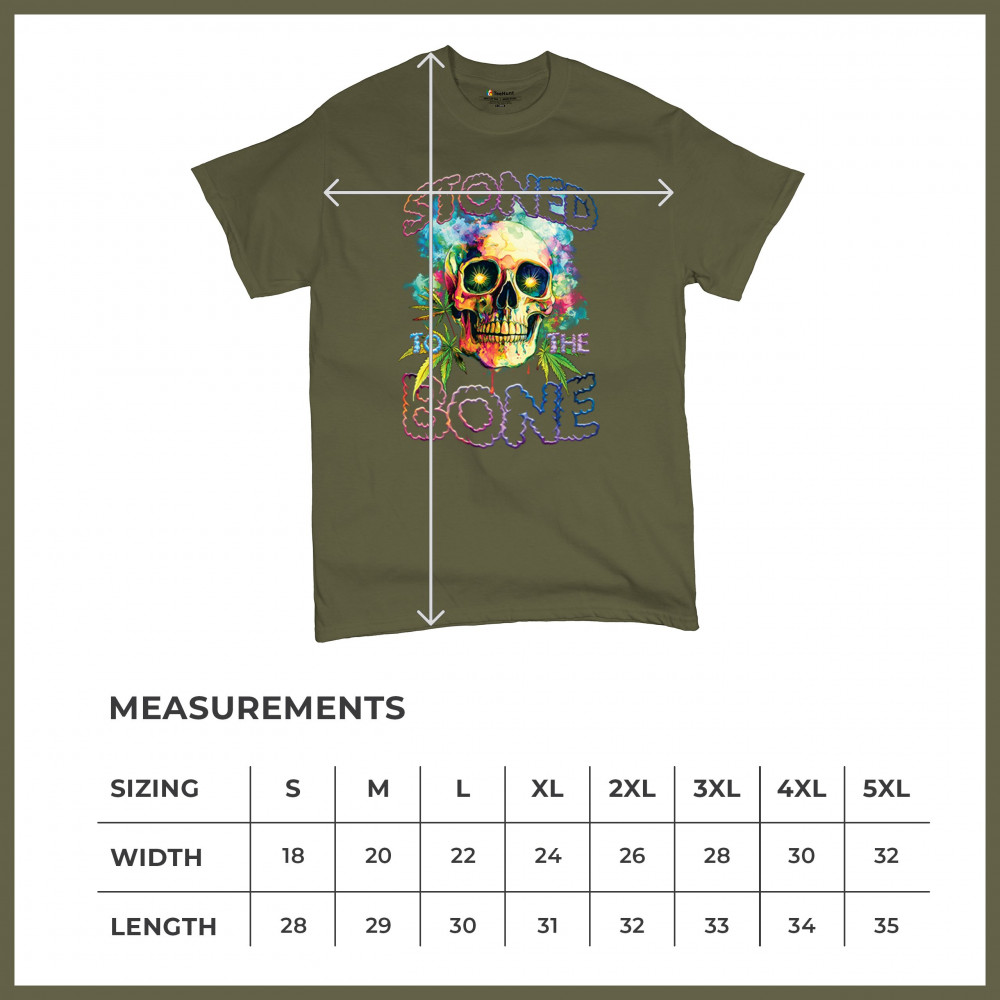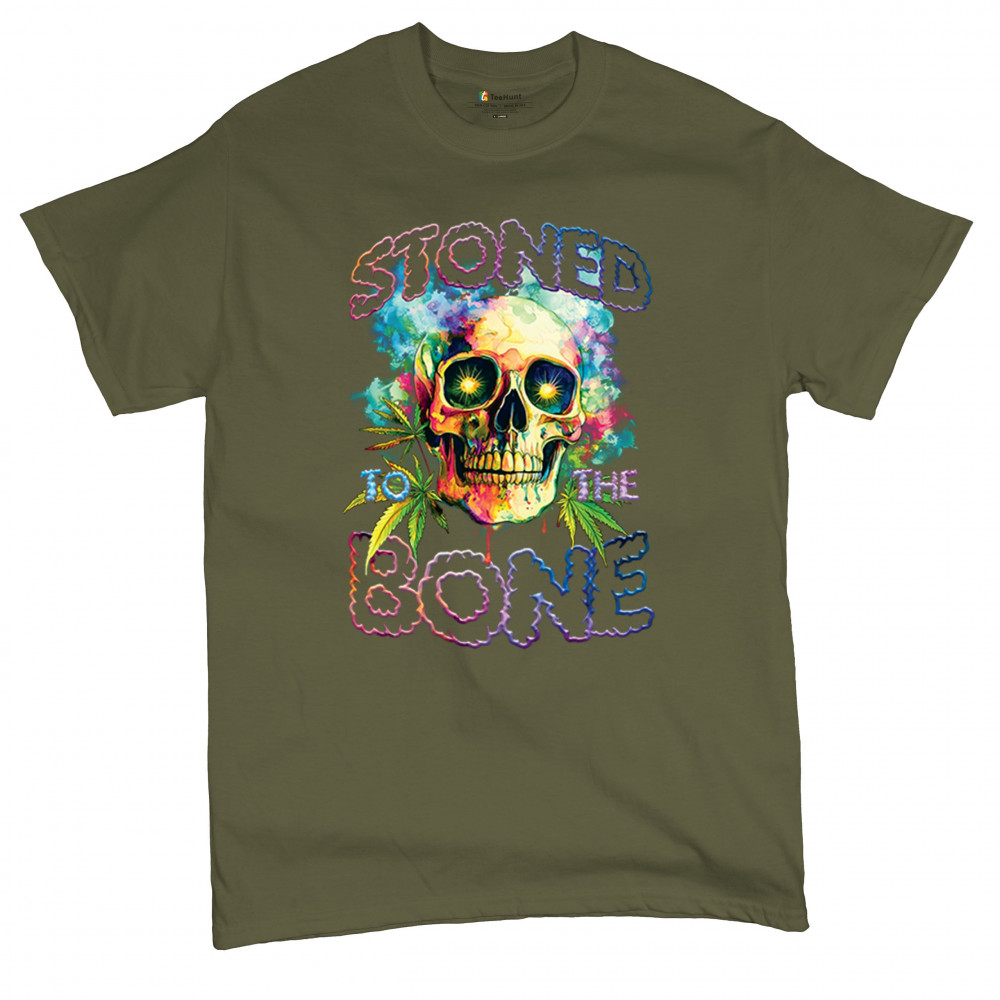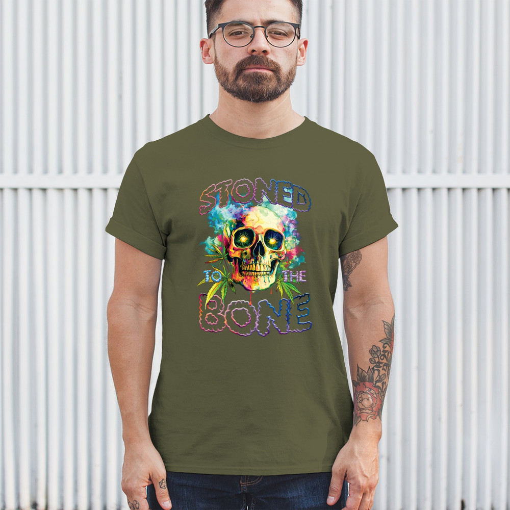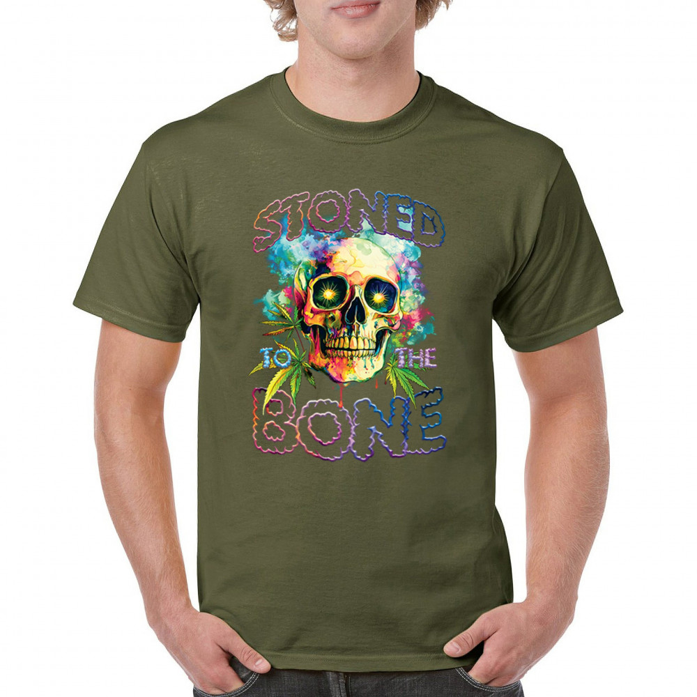 Turn heads with this bold, psychedelic “Stoned to the Bone†skull tee—loaded with neon colors, weed leaves, and a trippy aesthetic. It’s built for cannabis lovers, hippies, festival-goers, and party people living the high life. The ultimate head shop style and 420 fashion statement.