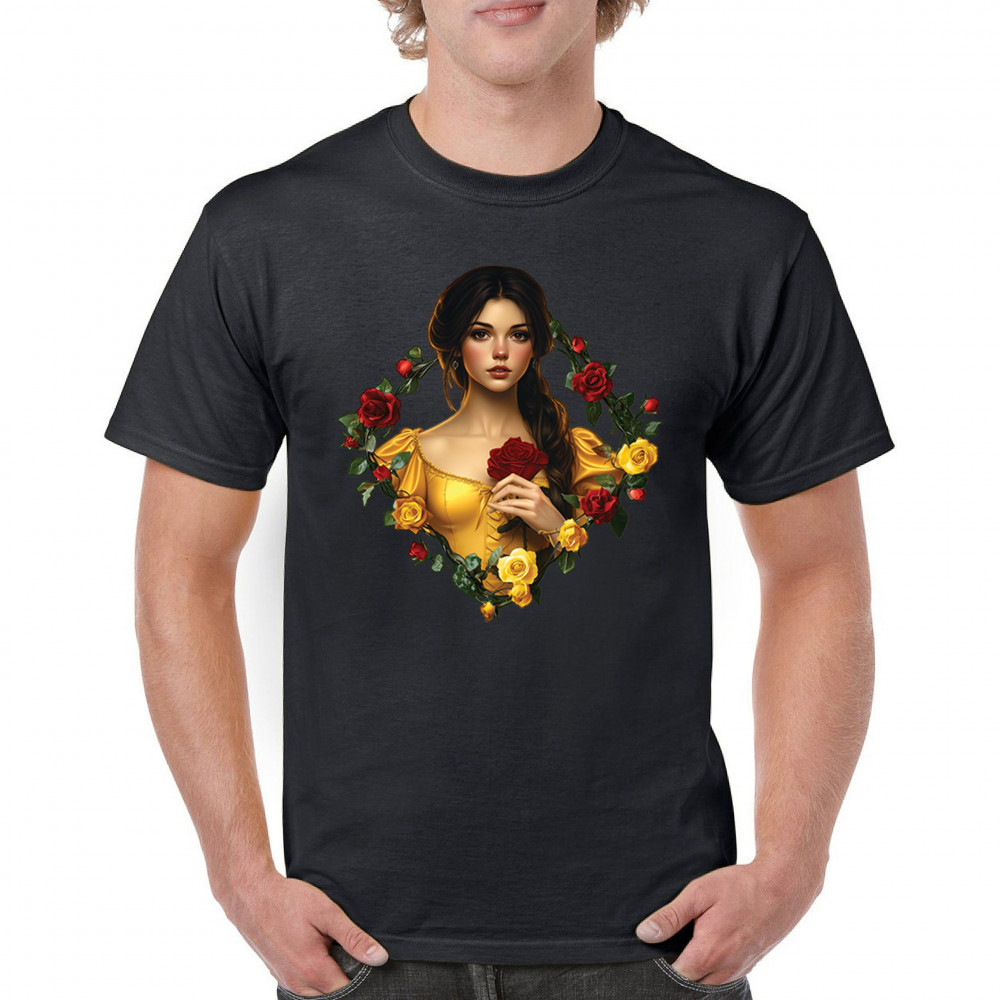 STORYBOOK BEAUTY ROSE PRINCESS storybook beauty princess t-shirt fantasy romantic fairytale men's tee black