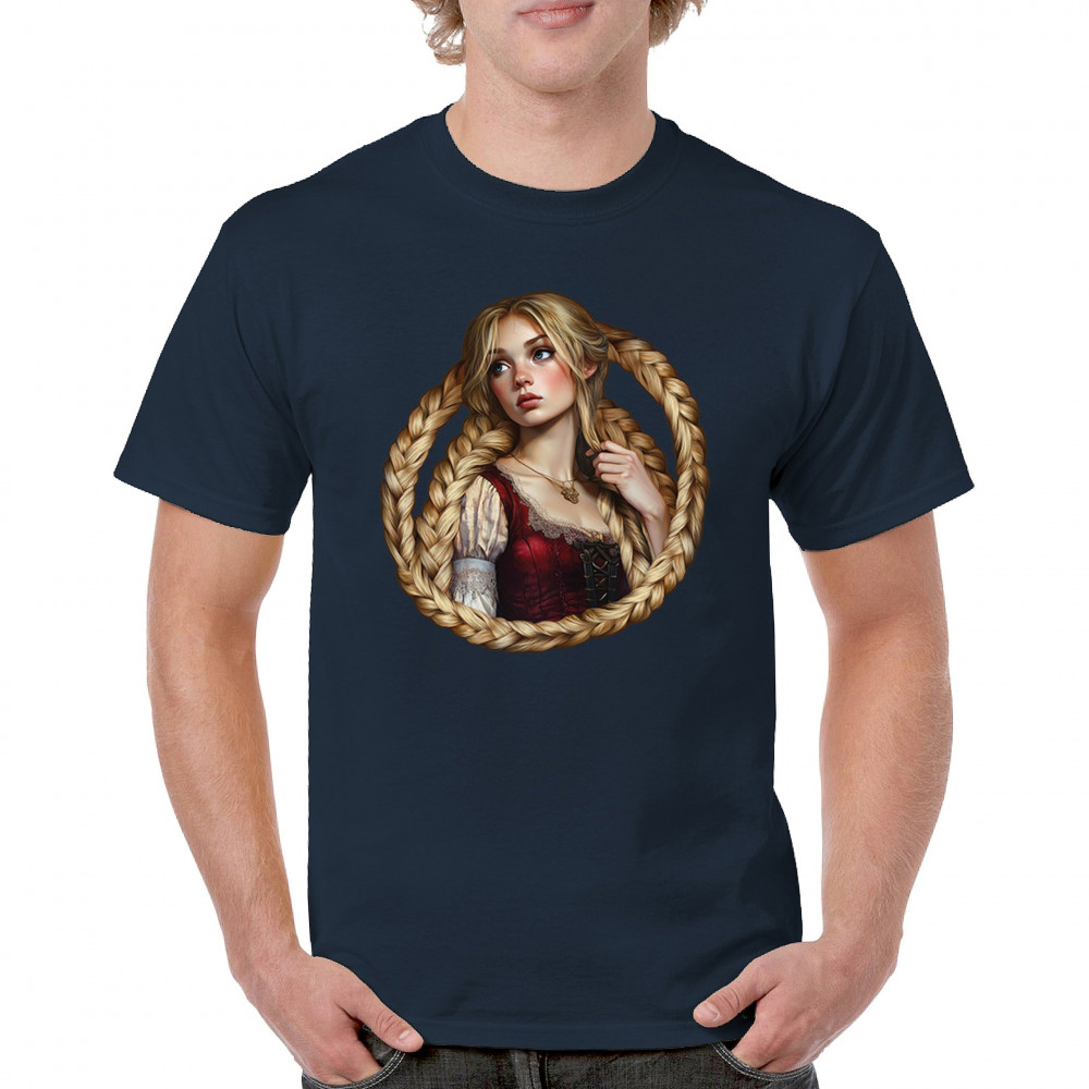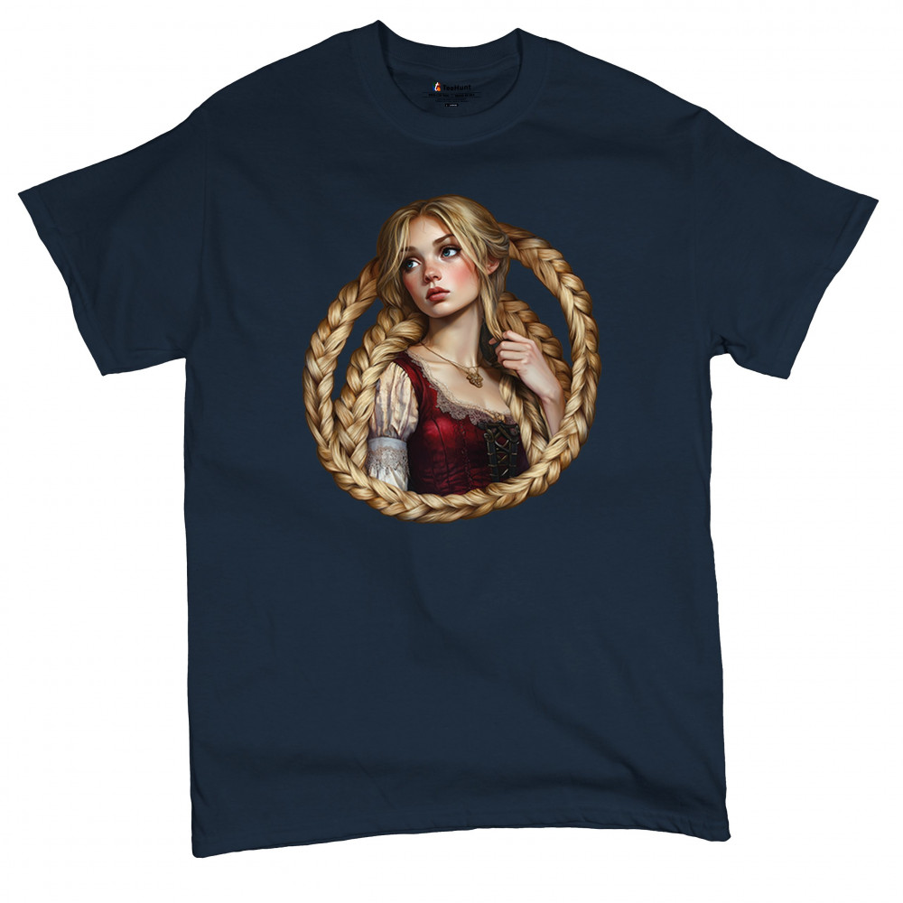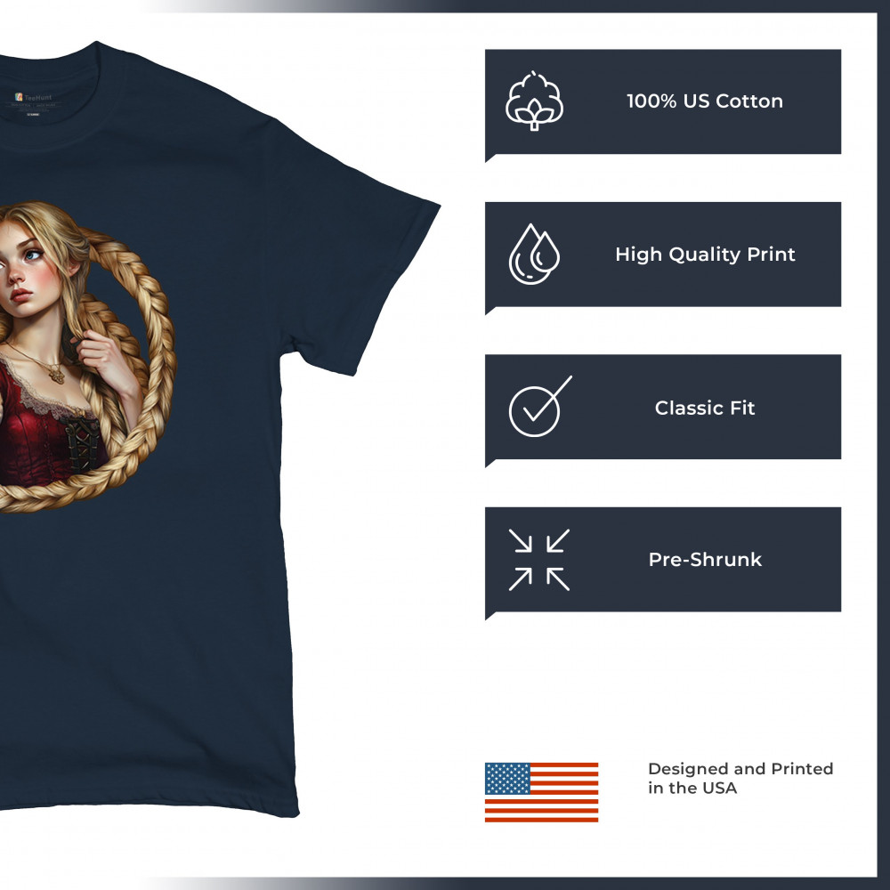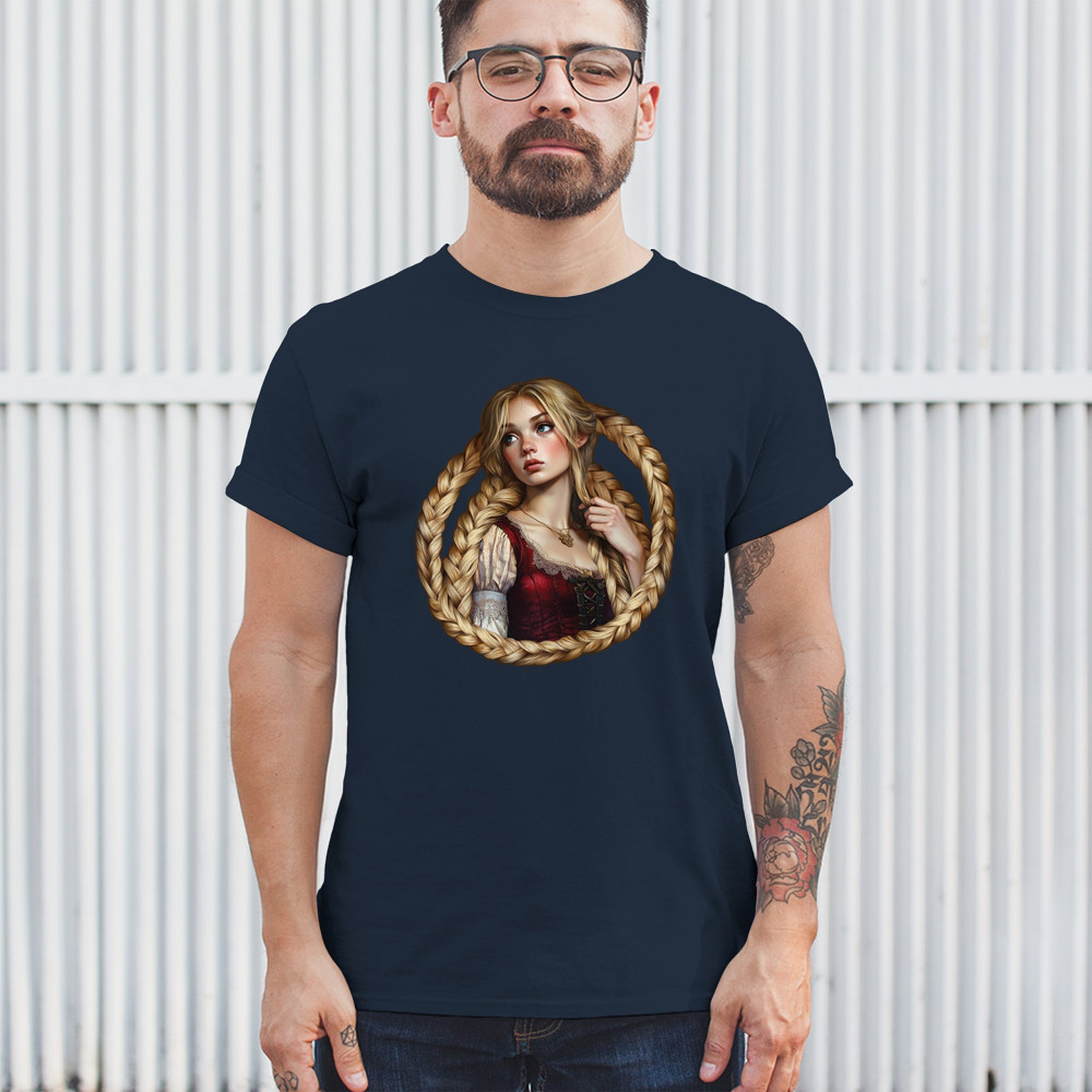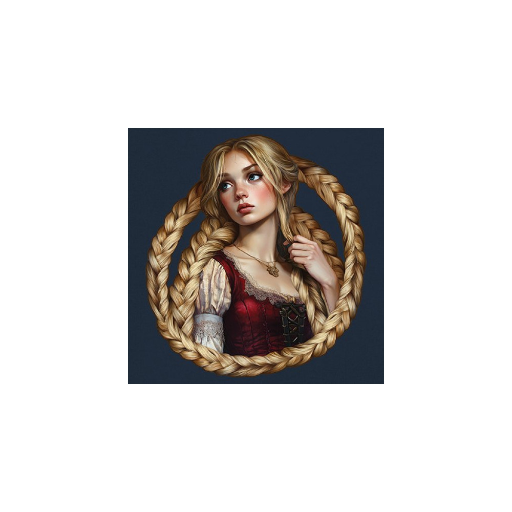 A dreamy design featuring a blonde girl with long braided hair encircling her like a frame. With vintage dress details and a wistful look, this artwork channels the essence of fairytales, romantic legends, and gentle feminine power. Ideal for fantasy lovers, folklore fans, and collectors of magical storybook themes.
