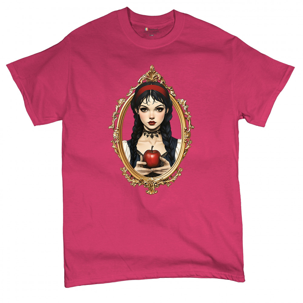 This enchanting design brings to life a gothic-inspired girl holding a red apple, encased in a regal vintage mirror frame. With elements pulled from Snow White, fairytales, and fantasy symbolism, it blends innocence and temptation with dark romanticism. Perfect for dreamers, collectors, and lovers of magical narratives and visual elegance.