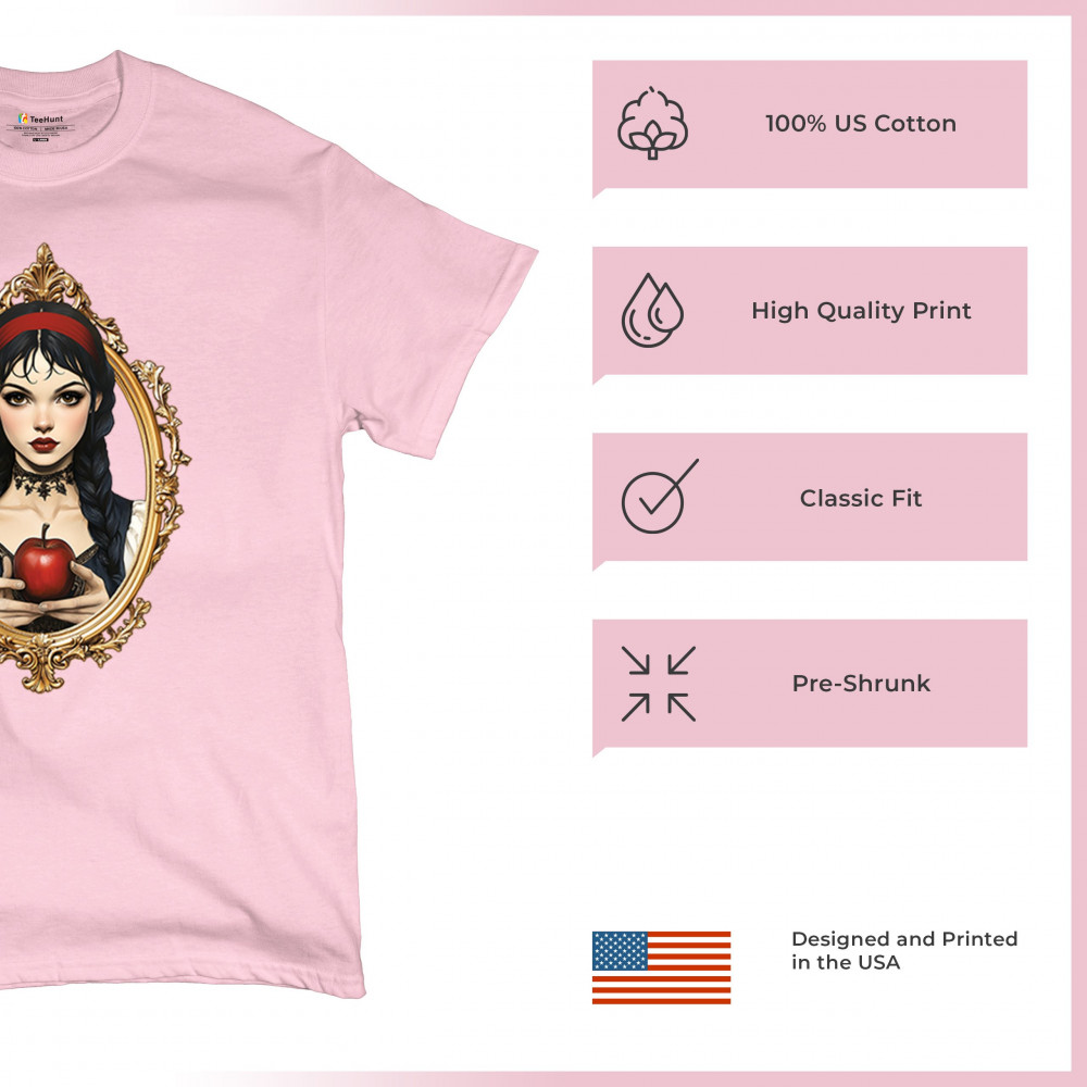 This enchanting design brings to life a gothic-inspired girl holding a red apple, encased in a regal vintage mirror frame. With elements pulled from Snow White, fairytales, and fantasy symbolism, it blends innocence and temptation with dark romanticism. Perfect for dreamers, collectors, and lovers of magical narratives and visual elegance.