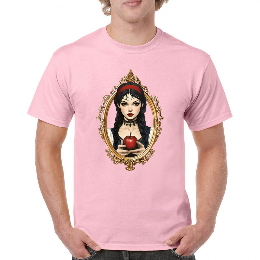Dark fairytale design with red apple, gold frame, and Snow White vibes. A dreamy blend of fantasy, gothic style, and magical storytelling.
