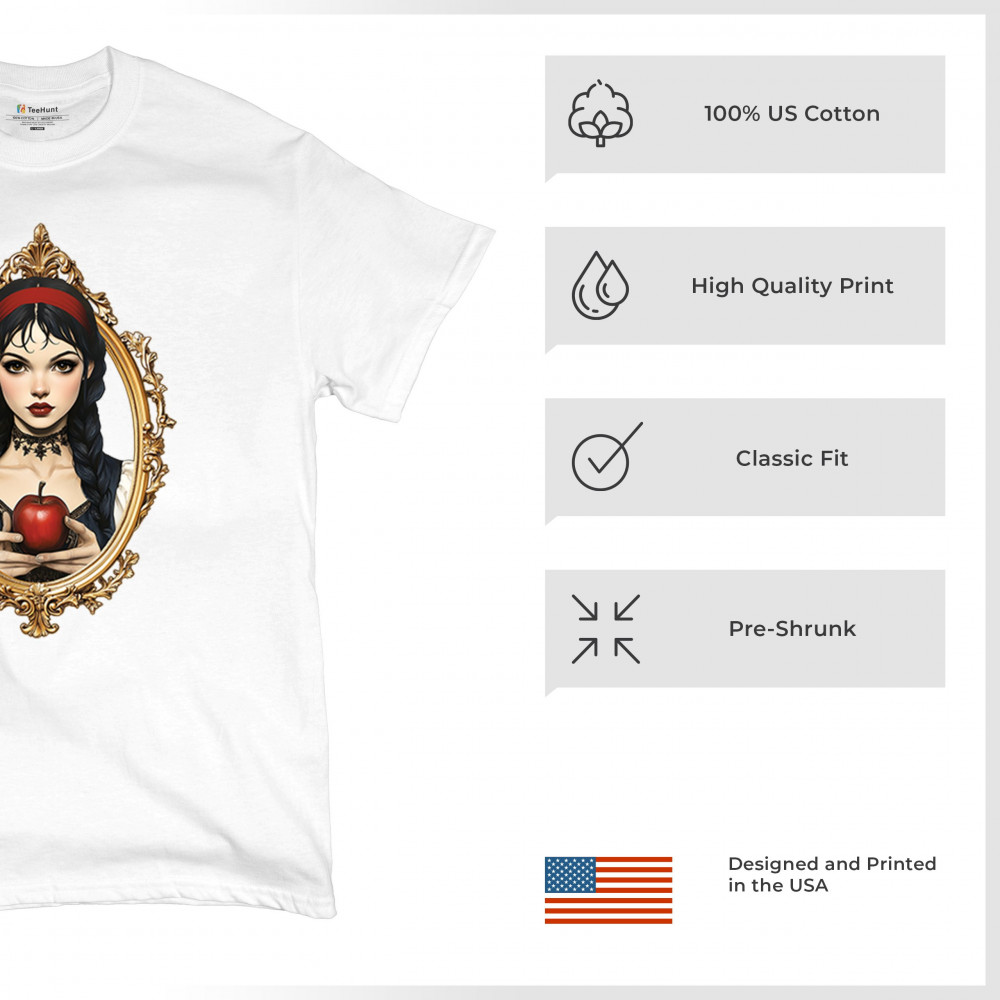This enchanting design brings to life a gothic-inspired girl holding a red apple, encased in a regal vintage mirror frame. With elements pulled from Snow White, fairytales, and fantasy symbolism, it blends innocence and temptation with dark romanticism. Perfect for dreamers, collectors, and lovers of magical narratives and visual elegance.