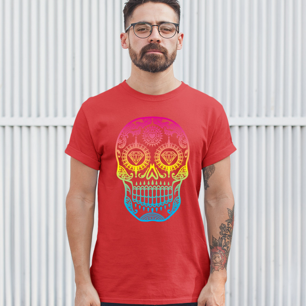 SUGAR SKULL CALAVERA DIAMOND EYES t-shirt day of the dead men's tee red