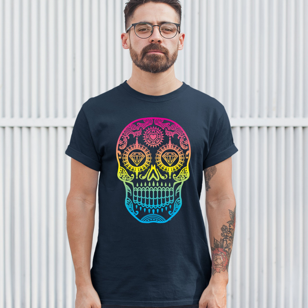 SUGAR SKULL CALAVERA DIAMOND EYES t-shirt day of the dead men's tee navy blue