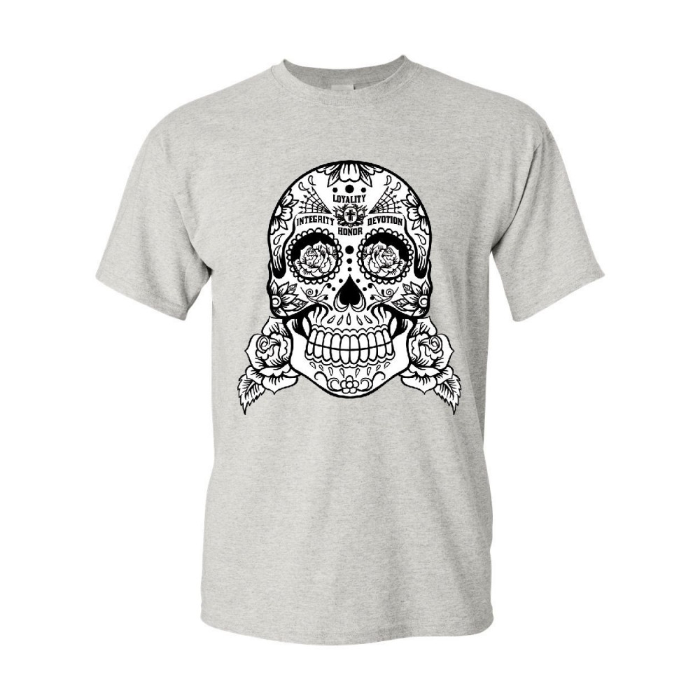 SUGAR SKULL t-shirt loyalty integrity devotion honor tee ash gray
