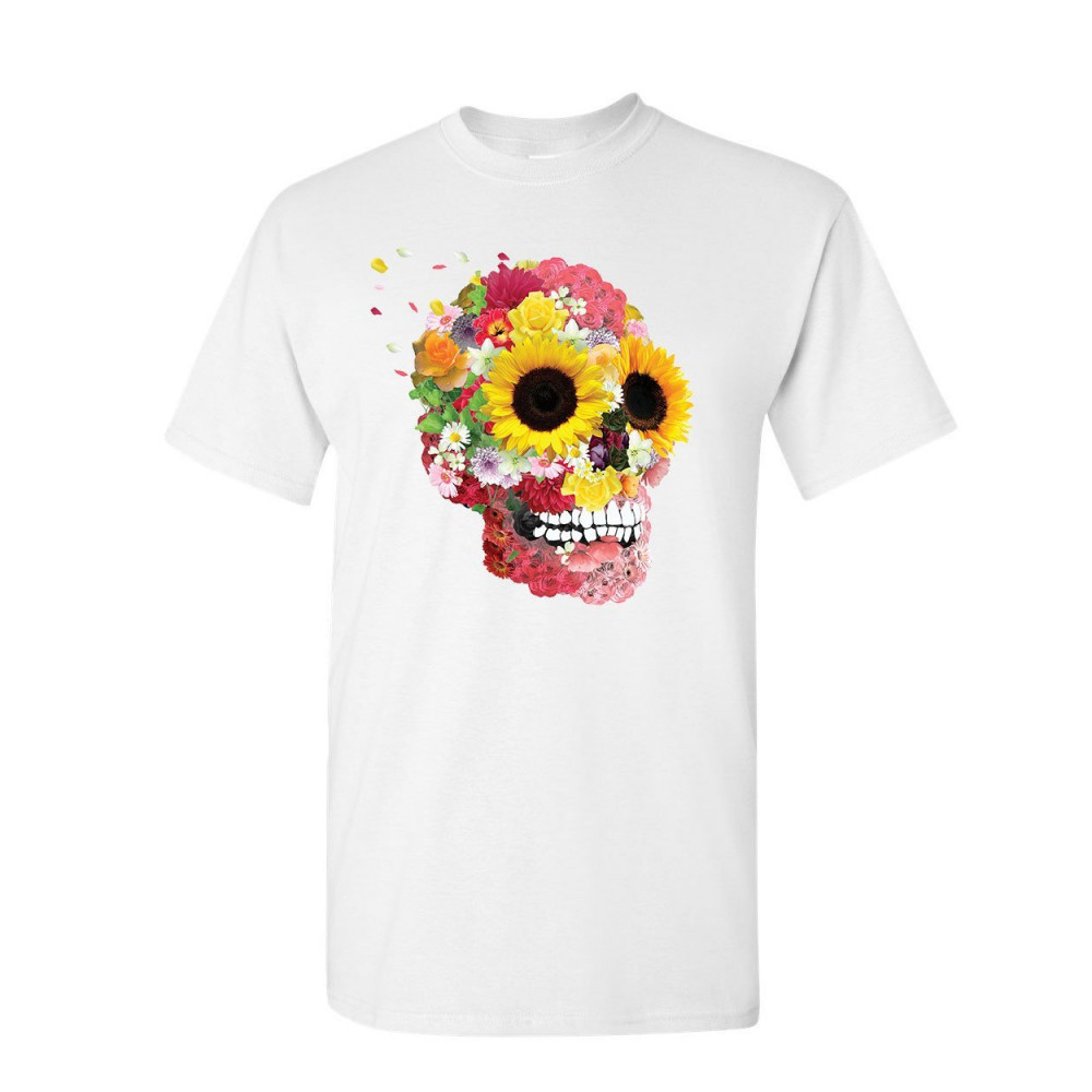 SUNFLOWERS SUGAR SKULL t-shirt day of the dead calavera mexico mens tee shirt white