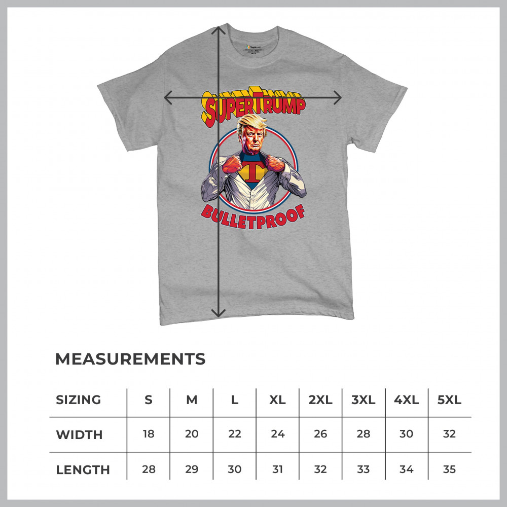 Express your support with a bold SuperTrump design! Perfect for patriots and rallies, this tee symbolizes victory, strength, and conservative pride.