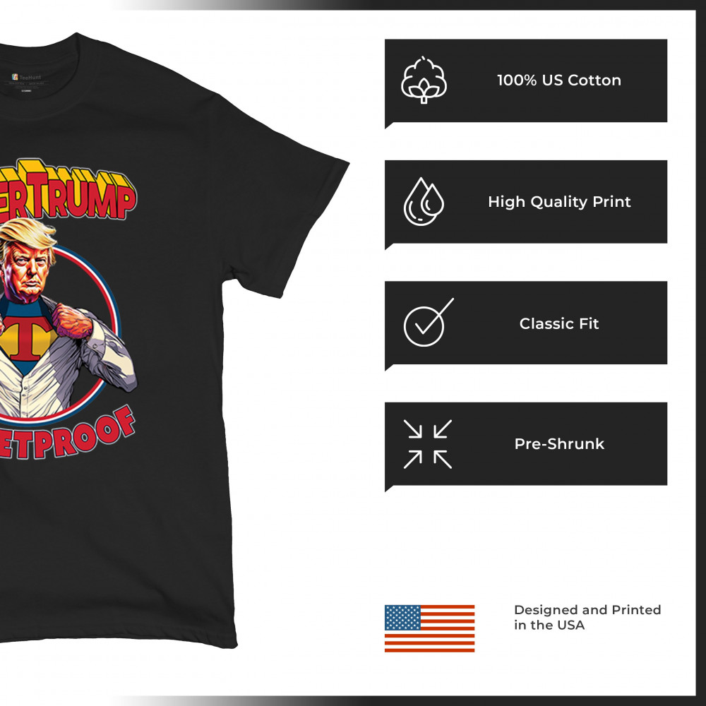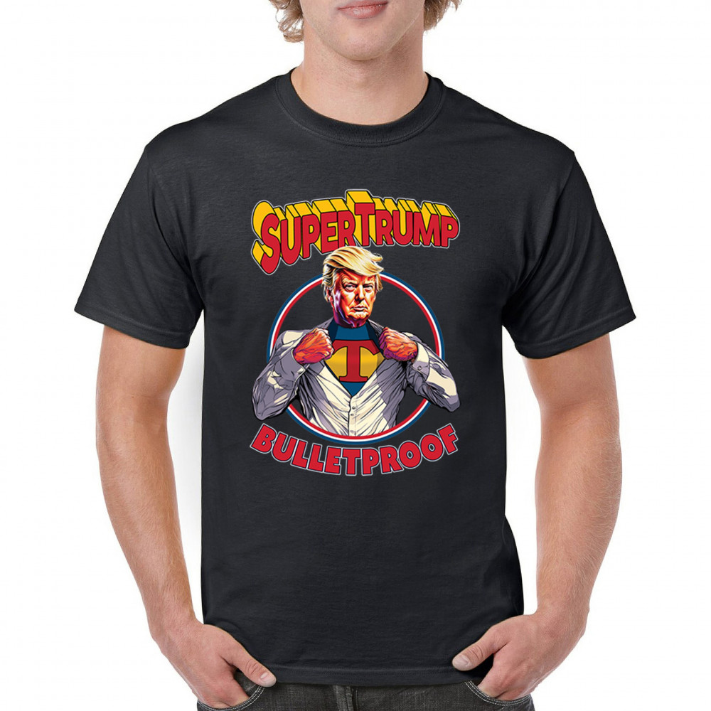 SUPER TRUMP BULLETPROOF 2024 t-shirt maga make america great again men's tee black