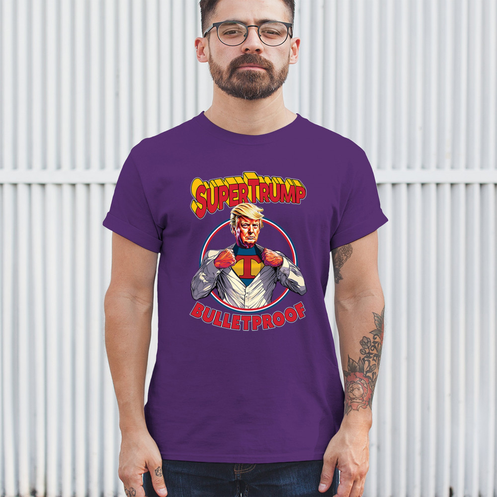 Express your support with a bold SuperTrump design! Perfect for patriots and rallies, this tee symbolizes victory, strength, and conservative pride.