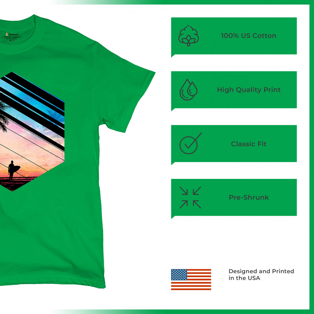 Catch the vibe of endless summer with our surf-inspired tee. Featuring silhouetted palms, warm gradients, and cool geometric shapes, it’s a visual journey from the urban grind to tropical tranquility. This tee is for the soul surfers and dreamers, made to be as enduring as the memories of your last wave. It's more than apparel—it’s a horizon of possibilities. Add this staple to your collection and let the good times roll.