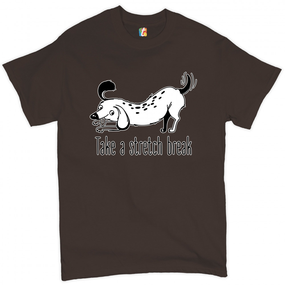 TAKE A STRETCH BREAK t-shirt funny dachshund dog lover pet owner men's tee brown