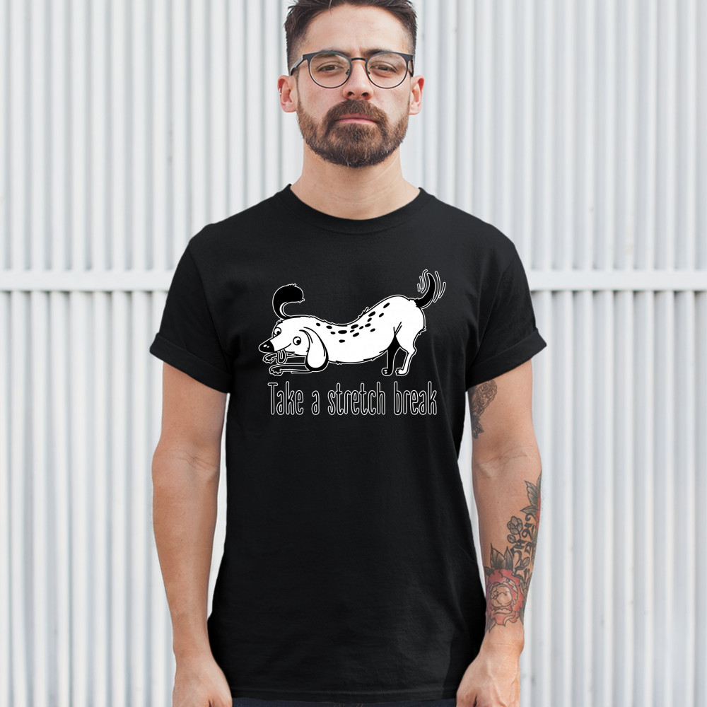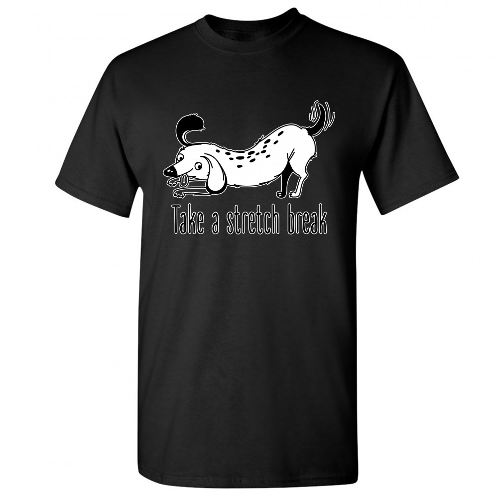 TAKE A STRETCH BREAK t-shirt funny dachshund dog lover pet owner men's tee black
