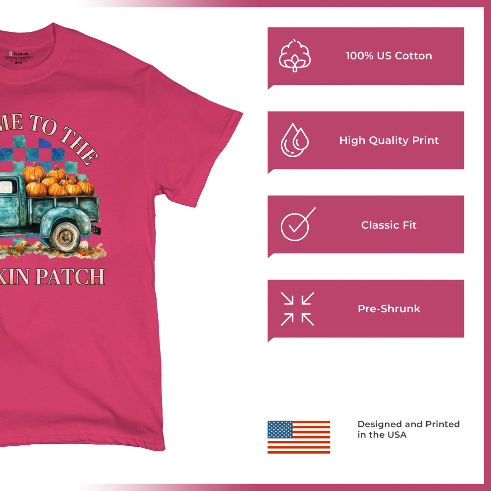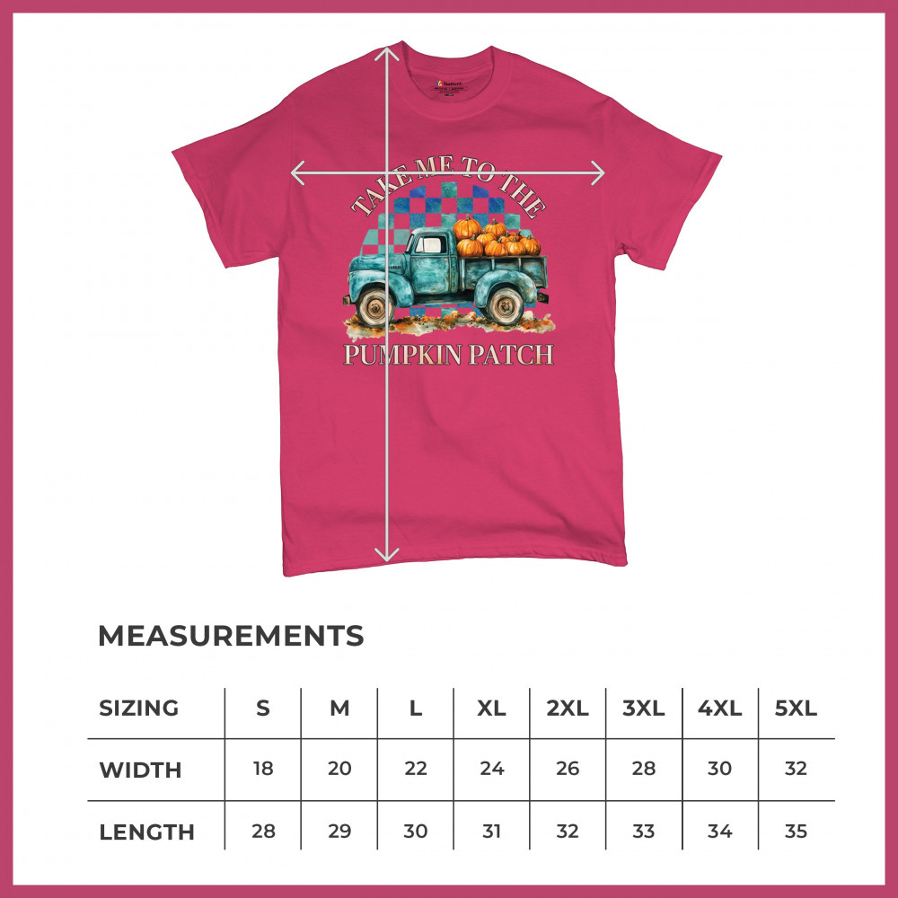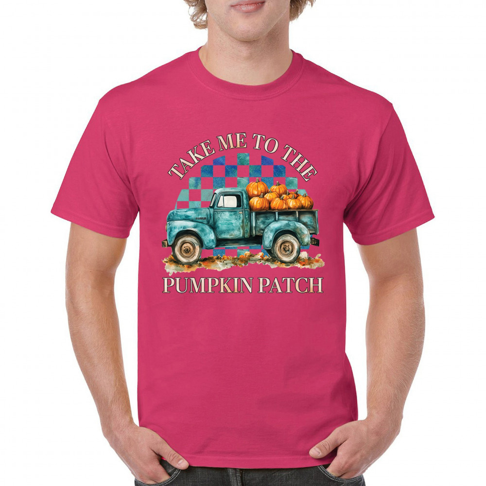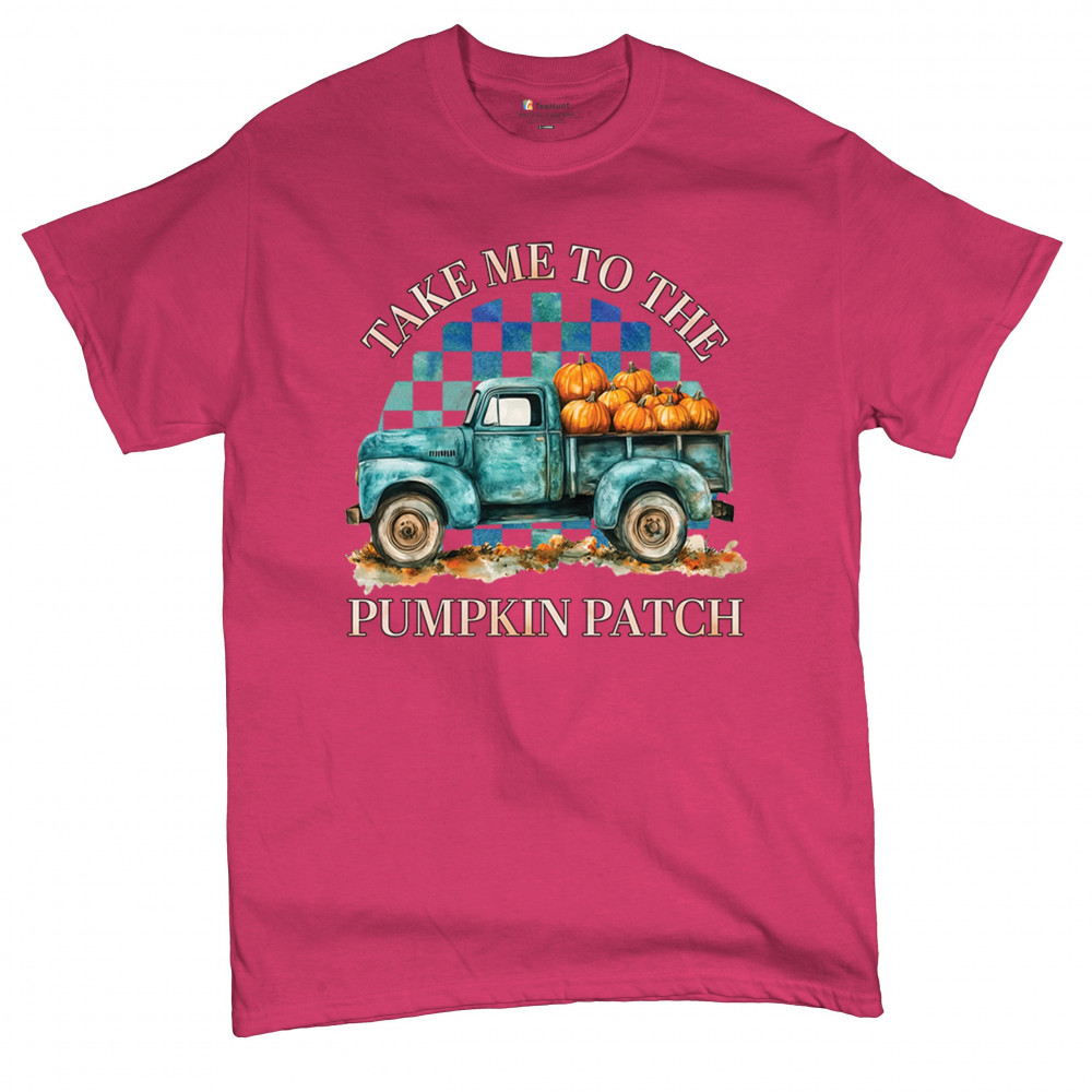 Celebrate autumn in style with the "Take Me to the Pumpkin Patch" design, featuring a vintage truck and festive pumpkins—perfect for fall lovers!
